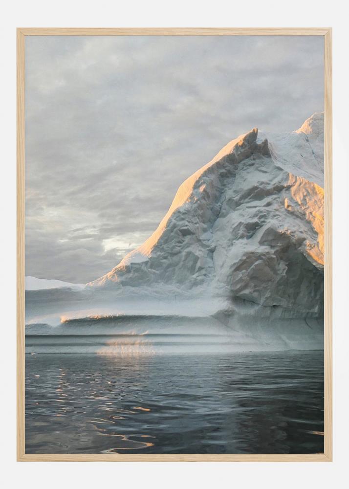 Denne fantastiske isfjellplakaten reflekteres i det dype, kalde havet mot en overskyet grå himmel. Det lille snødekte fjellet er delvis opplyst av sollyset. Krystallklart hav kruser forsiktig i forgrunnen og skaper et fredelig bilde. En ideell plakat å henge over peisen.
