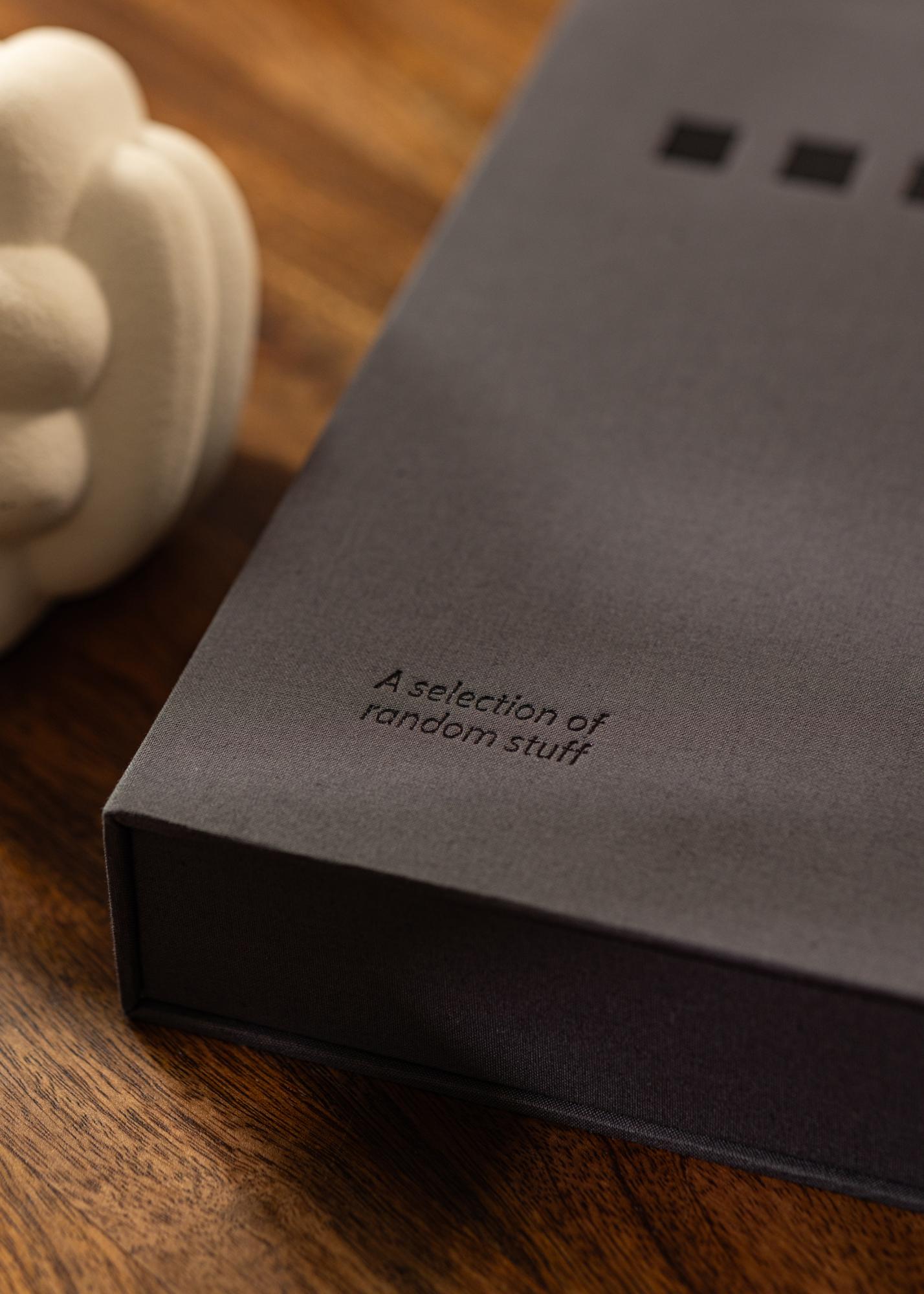 Når ord er overflødige, så kan bildene og minnene snakke for seg selv. Da kan du få et fotoalbum med tittelen: ... Dette Coffee Table Photo Album har et annet og leken - men samtidig veldig stilig - design som gjør det like mye til en fin og trendy interiørdetalj som til et praktisk fotoalbum. Fotoalbumet er elegant kledd i svart tekstil og den ordløse tittelen er blankt trykt på forsiden av albumet. I det nederste venstre hjørne av albumet finner du også en utskrift med underteksten A selection of random stuff.