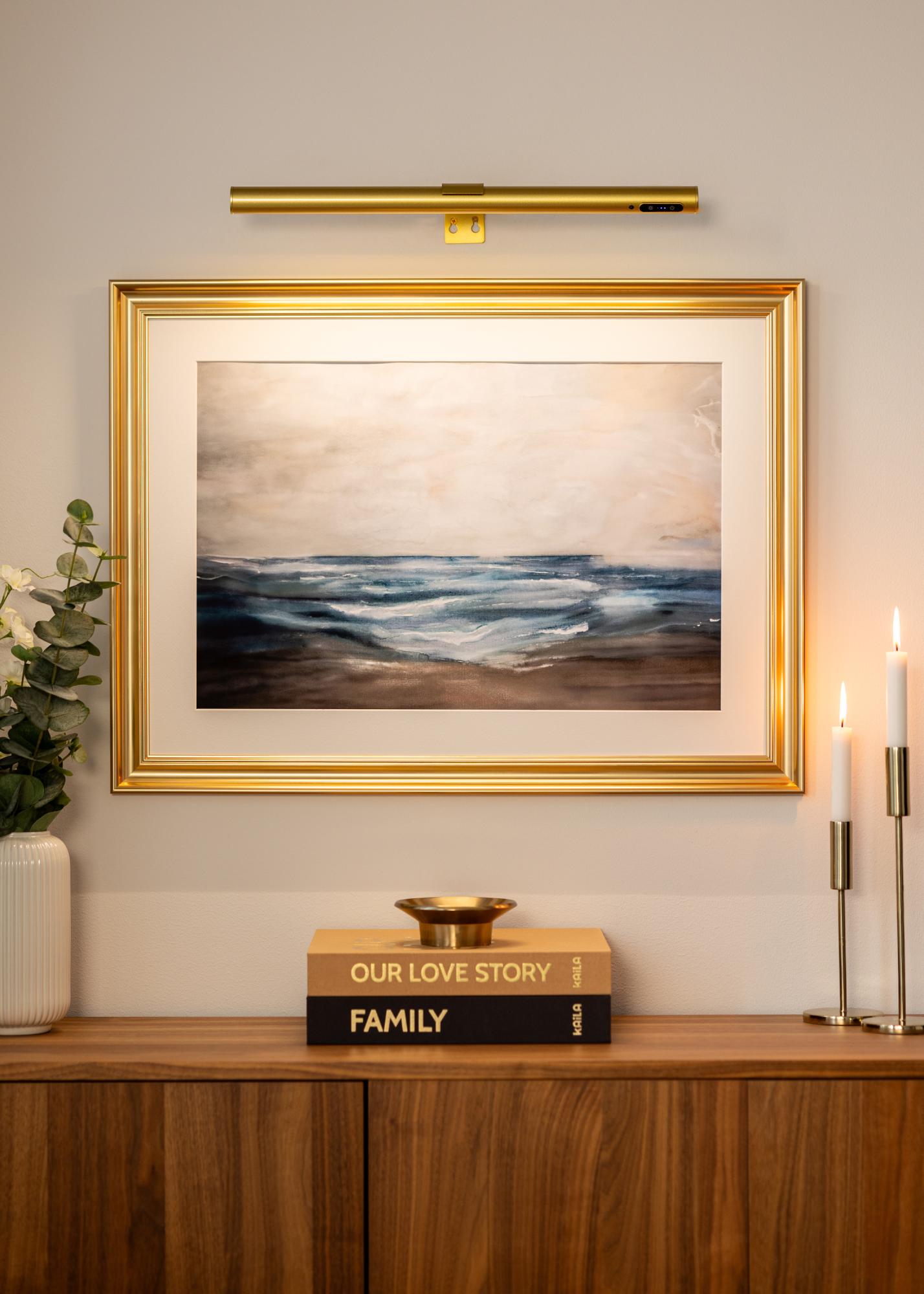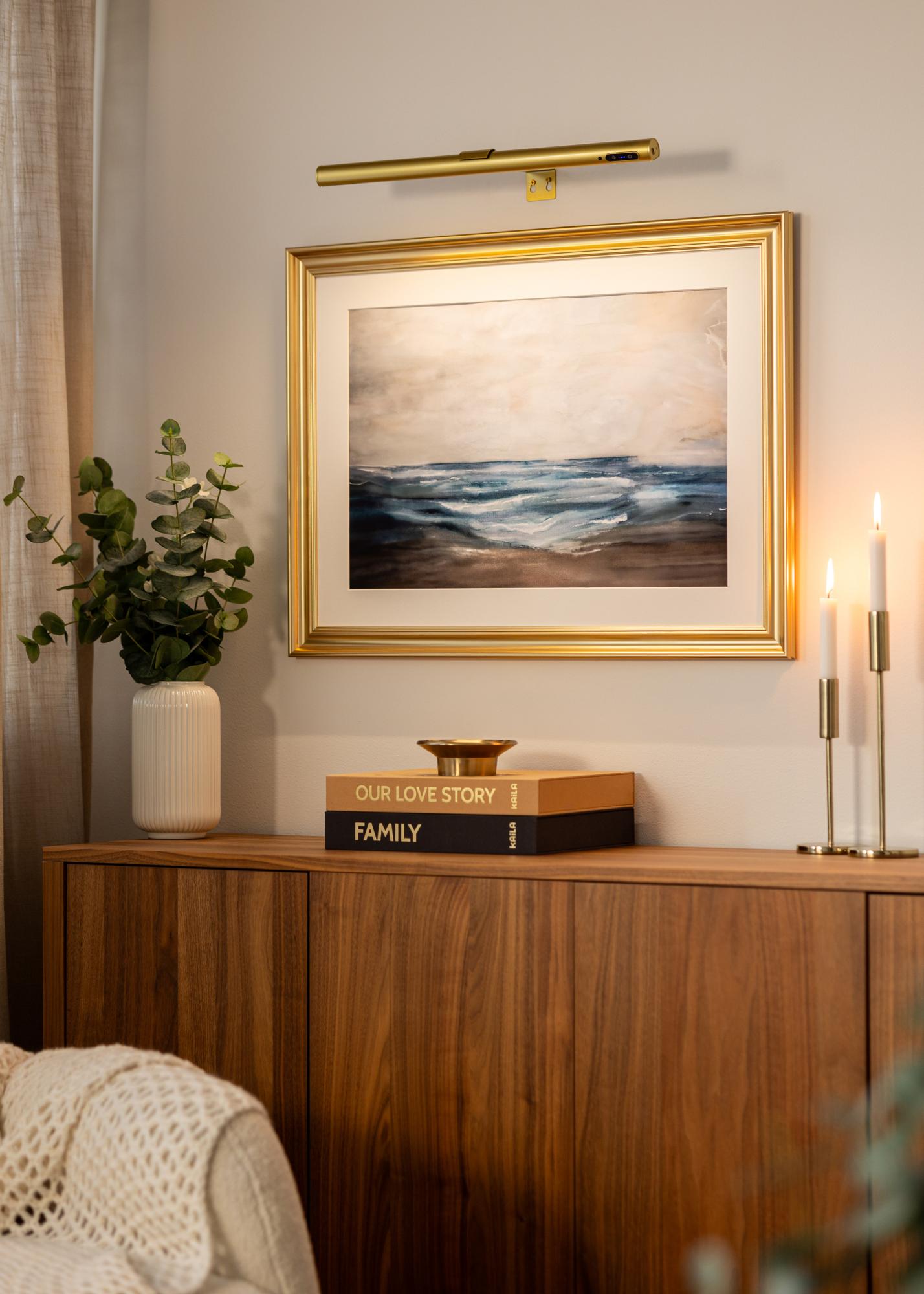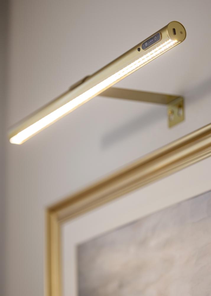 KAILA Halo er en stilren og batteridrevet bilde belysning i gull, perfekt for å belyse dine kunstverk uten forstyrrende ledninger. Takket være det ledningsfrie designet kan du plassere den hvor som helst uten å måtte ta hensyn til stikkontakter. Den elegante gullfinishen gir et eksklusivt uttrykk, mens lyset spres jevnt for å fremheve detaljer og farger på en vakker måte. Enkel å montere og praktisk å bruke – en praktisk løsning for å gi dine bilder den oppmerksomheten de fortjener.