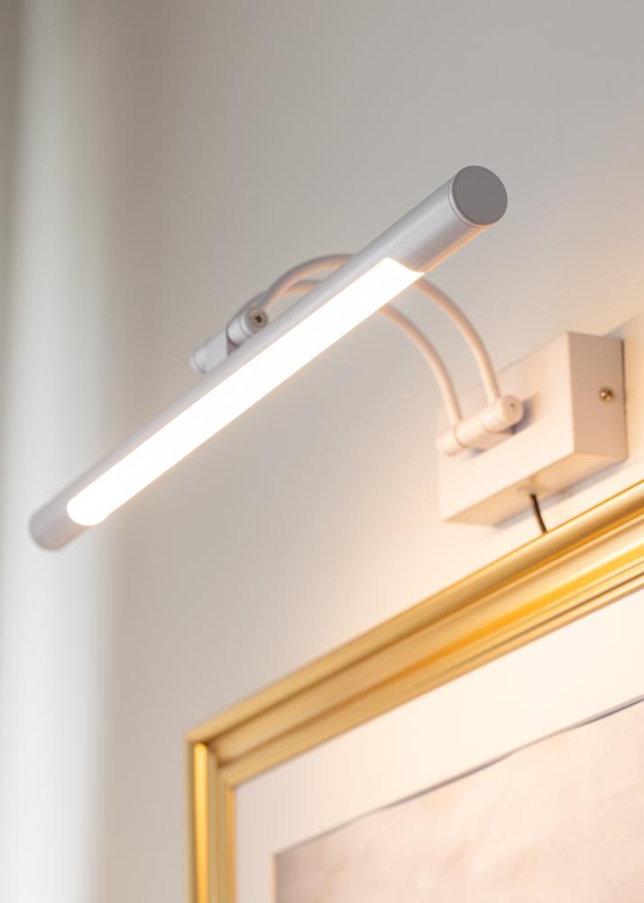 Den hvite finishen gjør at belysningen enkelt smelter inn i både moderne og klassisk innredning. Det diskrete utseendet og det justerbare lysnivået gjør denne bilde-belysningen til et perfekt komplement for å fremheve dine kunstverk på en sofistikert måte. Med sin enkle installasjon og allsidige design, er denne belysningen et utmerket valg for å gi ditt hjem et elegant og innbydende inntrykk.
