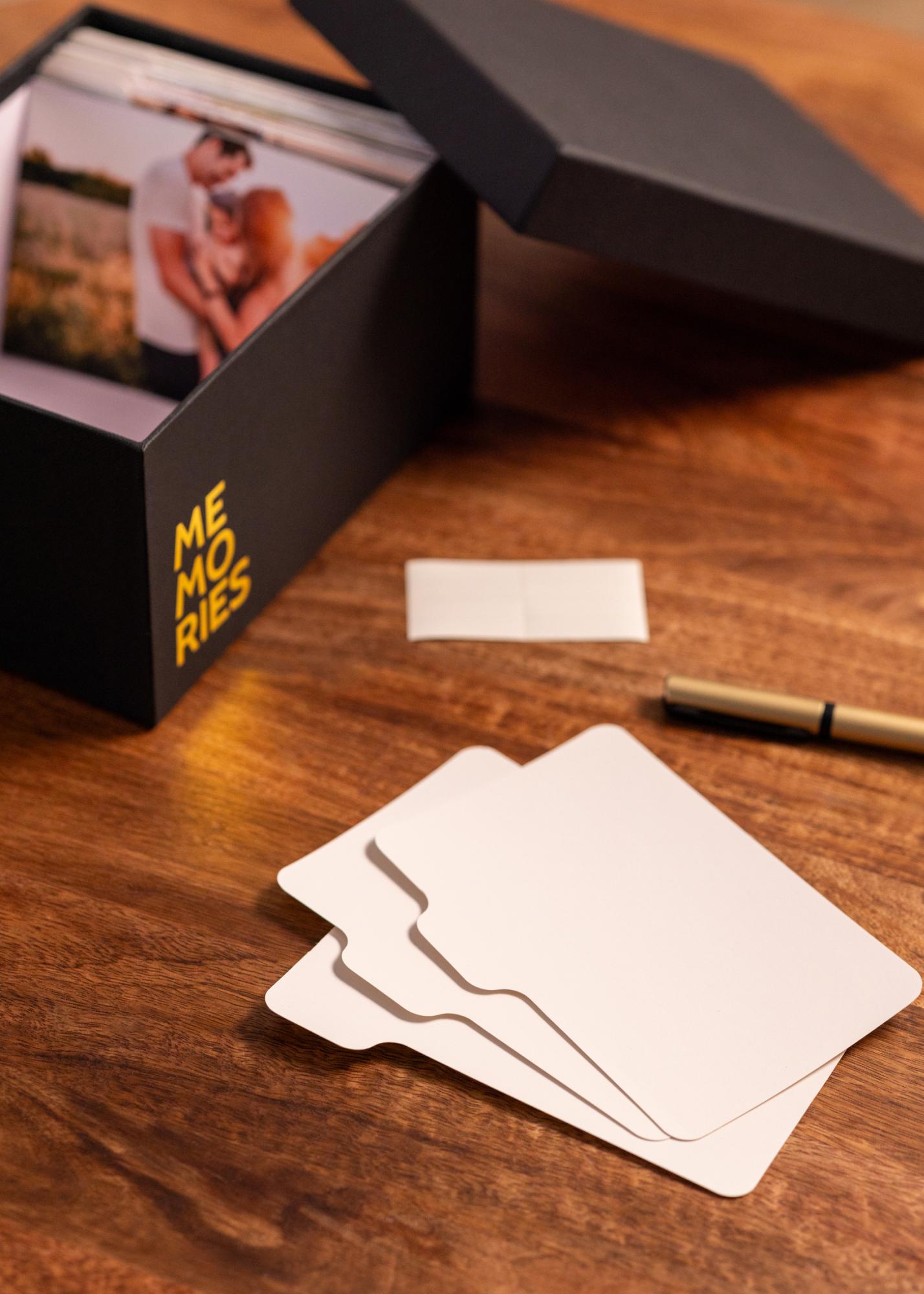 KAILA Memories Photo Box er en stilren og praktisk oppbevaringsboks for opptil 700 bilder i størrelsen 10x15 cm. Den elegante svarte designen gjør den til en tidløs detalj i hjemmet samtidig som den beskytter og organiserer dine fotografier. Perfekt for deg som vil samle minnene dine på en smidig og stilfull måte.