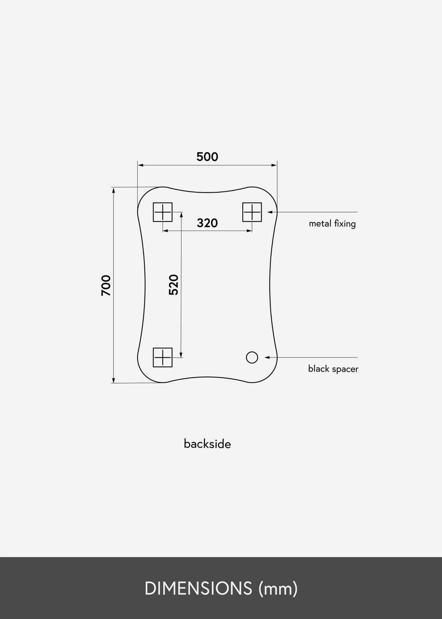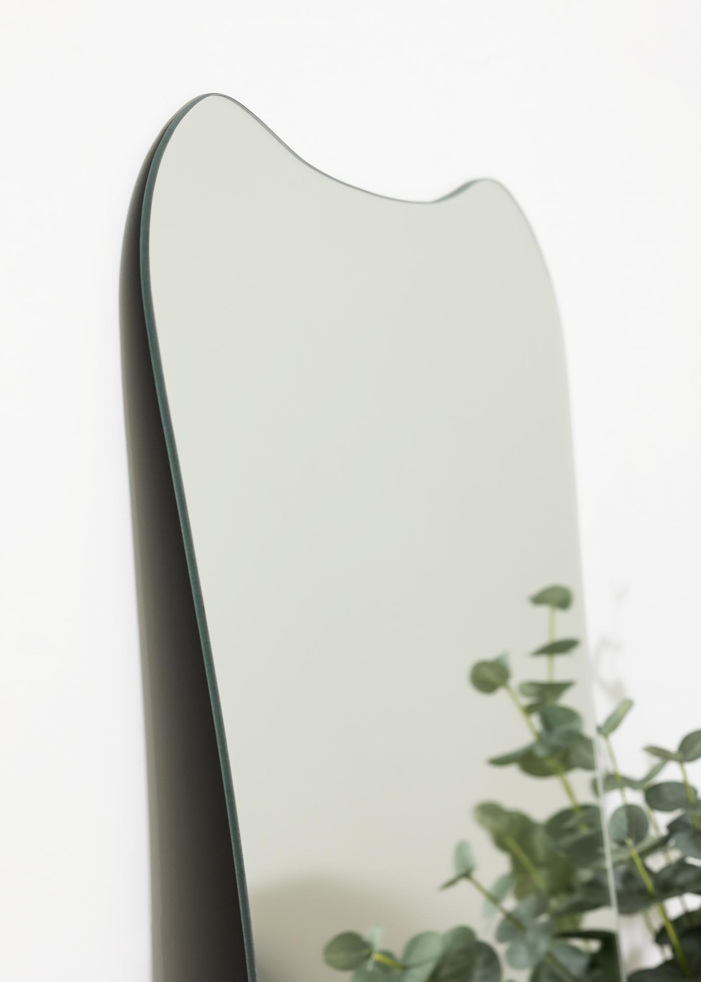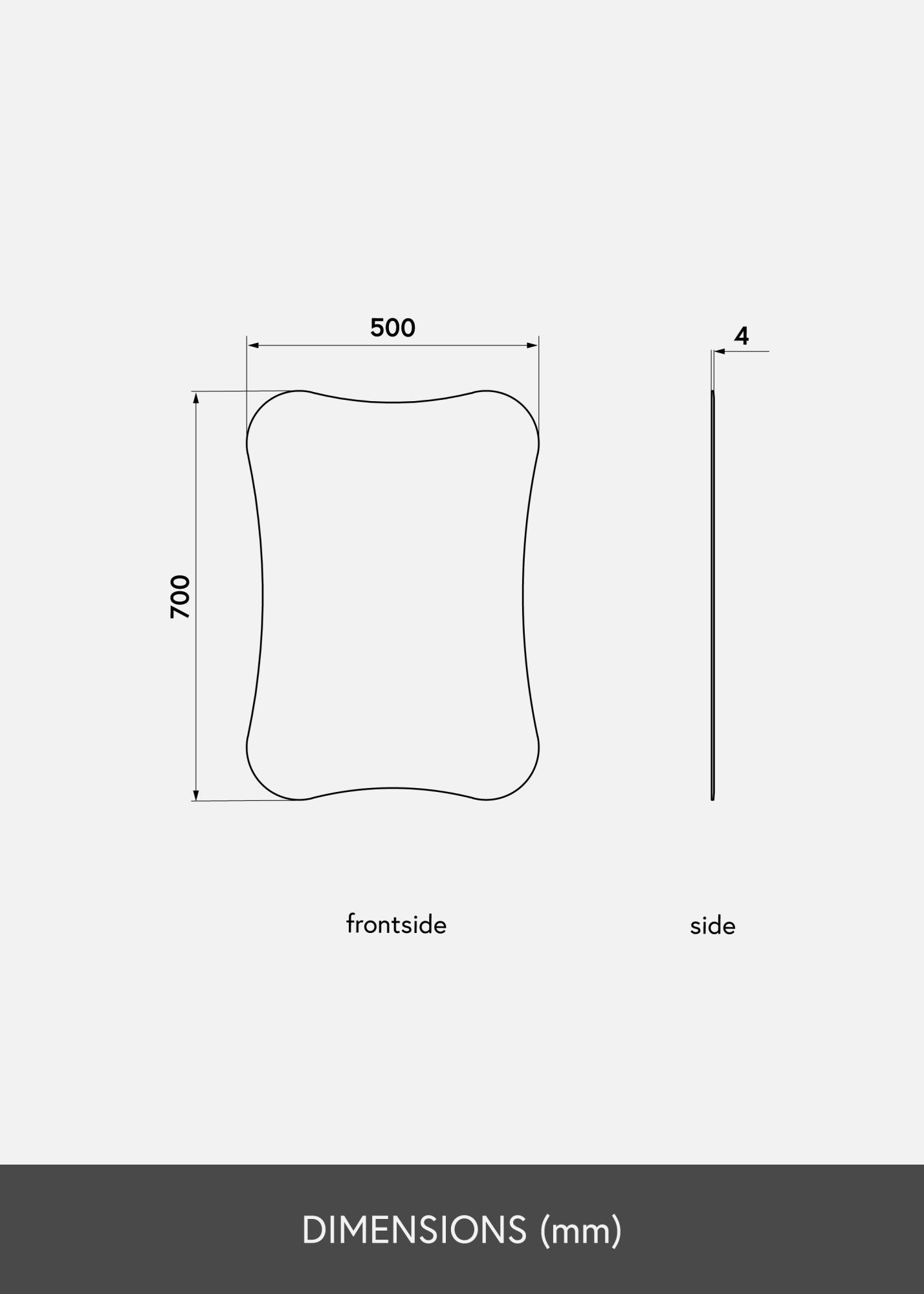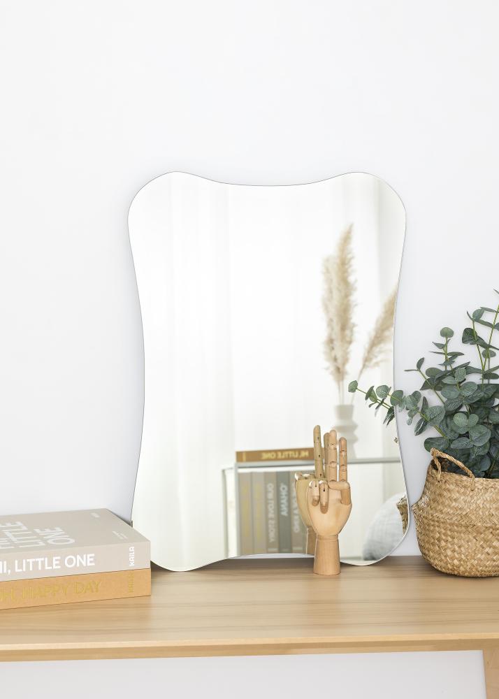 Rektangulært speil fra KAILA. Det har utsvingte avrundede hjørner som skaper en sideform som buer vakkert innover. Speilets klassiske utseende passer både i tradisjonelle og moderne hjem, og det ufargede speilglasset gir en tidløs eleganse. Speilet har praktisk veggfeste som gir enkel opphengning i både stående og liggende posisjon. Dette speilet har en størrelse på 50x70 cm.