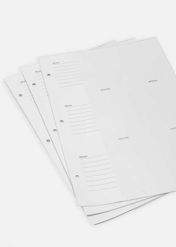 Albumsider som passer til vår trendy albumserie KAILA Coffee Table Album XL. De hvite albumsidene rommer 60 bilder i størrelse 11x15 cm, og har et skrivefelt ved hvert bilde slik at du kan skrive ned minner og notater til hvert fotografi.