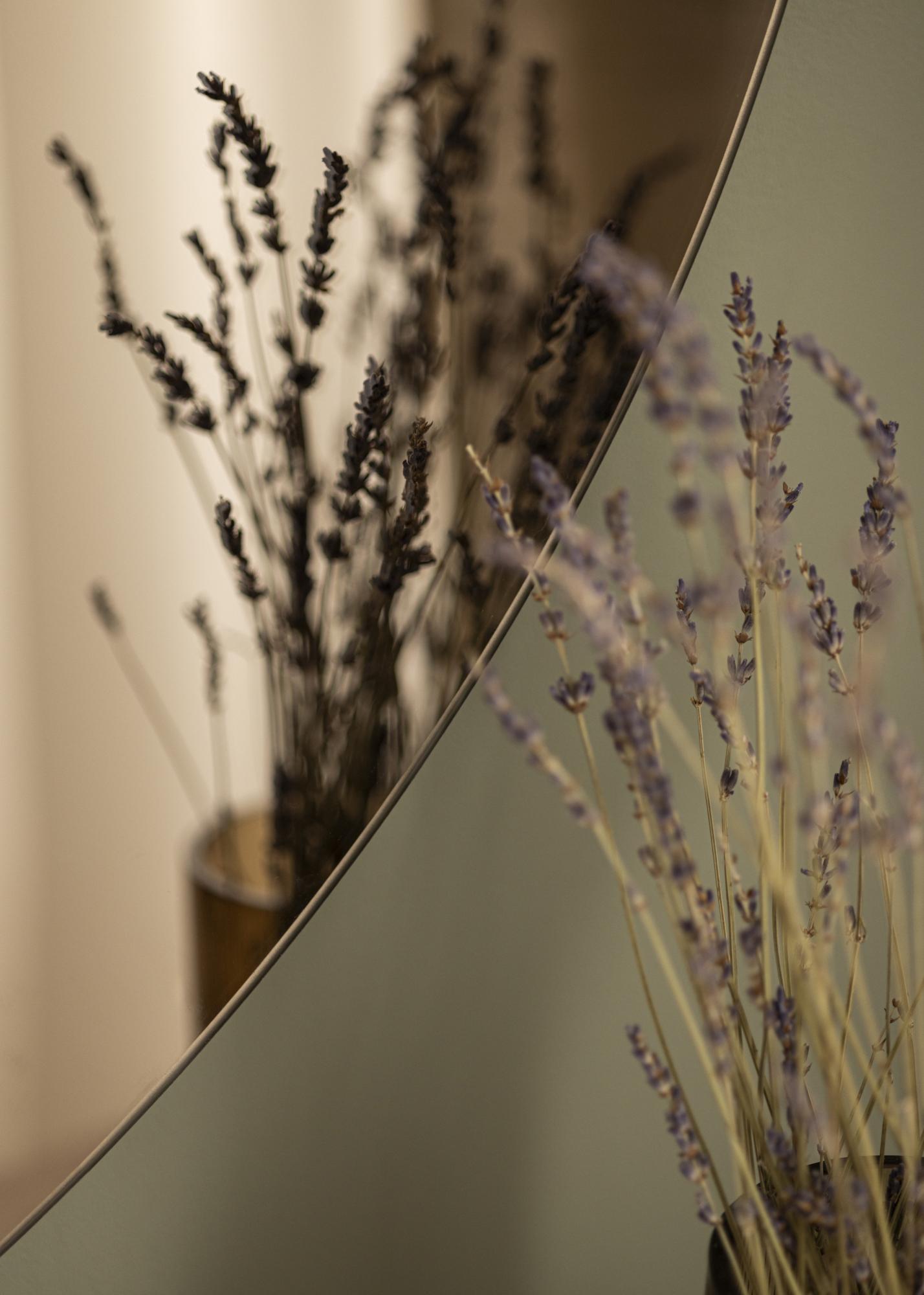 Dette runde speilet har tynt design uten ramme, noe som gir et elegant og eksklusivt utseende som løfter ethvert rom. Dette veggspeilet har speilglass i en bronsefarget nyanse som gir det en lun og hjemmekoselig fremtoning, og passer perfekt inn i moderne hjem. Speilet er en del av en serie runde, bronsefargede speil fra KAILA, og du kan velge mellom syv forskjellige størrelser for å finne det speilet som passer best til hjemmet ditt. Denne modellen har en diameter på 110 cm. Du kan enkelt henge opp speilet i gangen eller stuen ved hjelp av veggfestet.