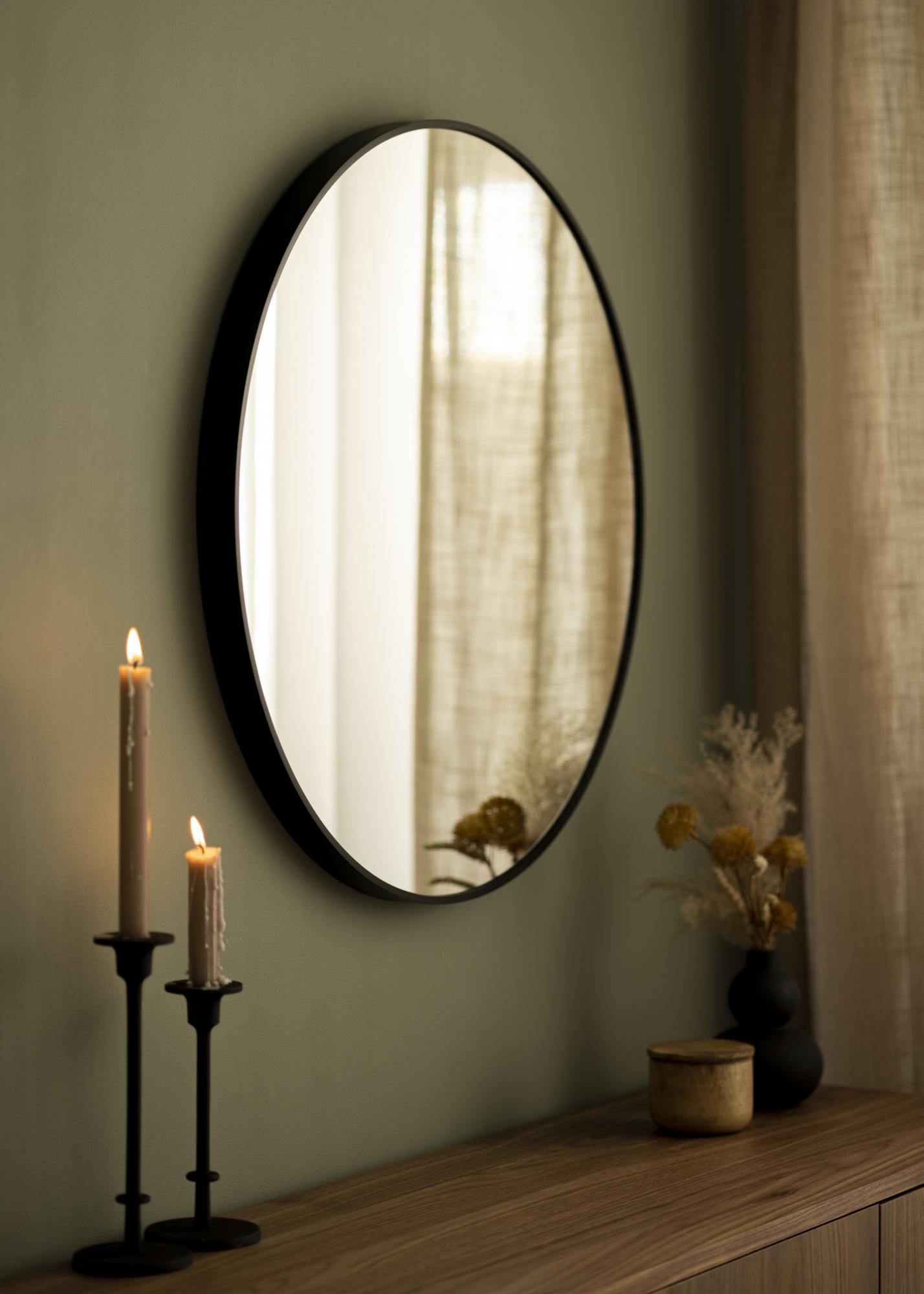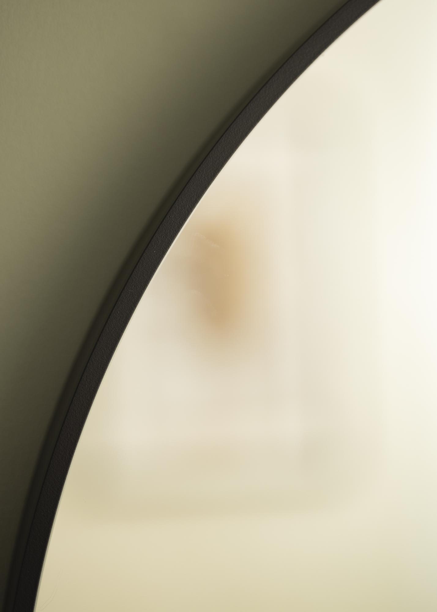 KAILA Round Mirror Edge Black er et rundt speil med en stilig tynn metallramme i en matt svart farge, noe som gir det et industrielt og trendy utseende. Rammen har - avhengig av størrelse - en dybde på mellom 30-40 mm, noe som gjør at speilglasset stikker et stykke ut fra veggen og skaper en stilig 3D-effekt. Dybden på rammen gjør også at speilet føles solid samtidig som det opprettholder en minimalistisk stil. Et perfekt rundt speil som kan plasseres i hvilket som helst rom hvor du vil tilføre både funksjon og stilig svensk design!