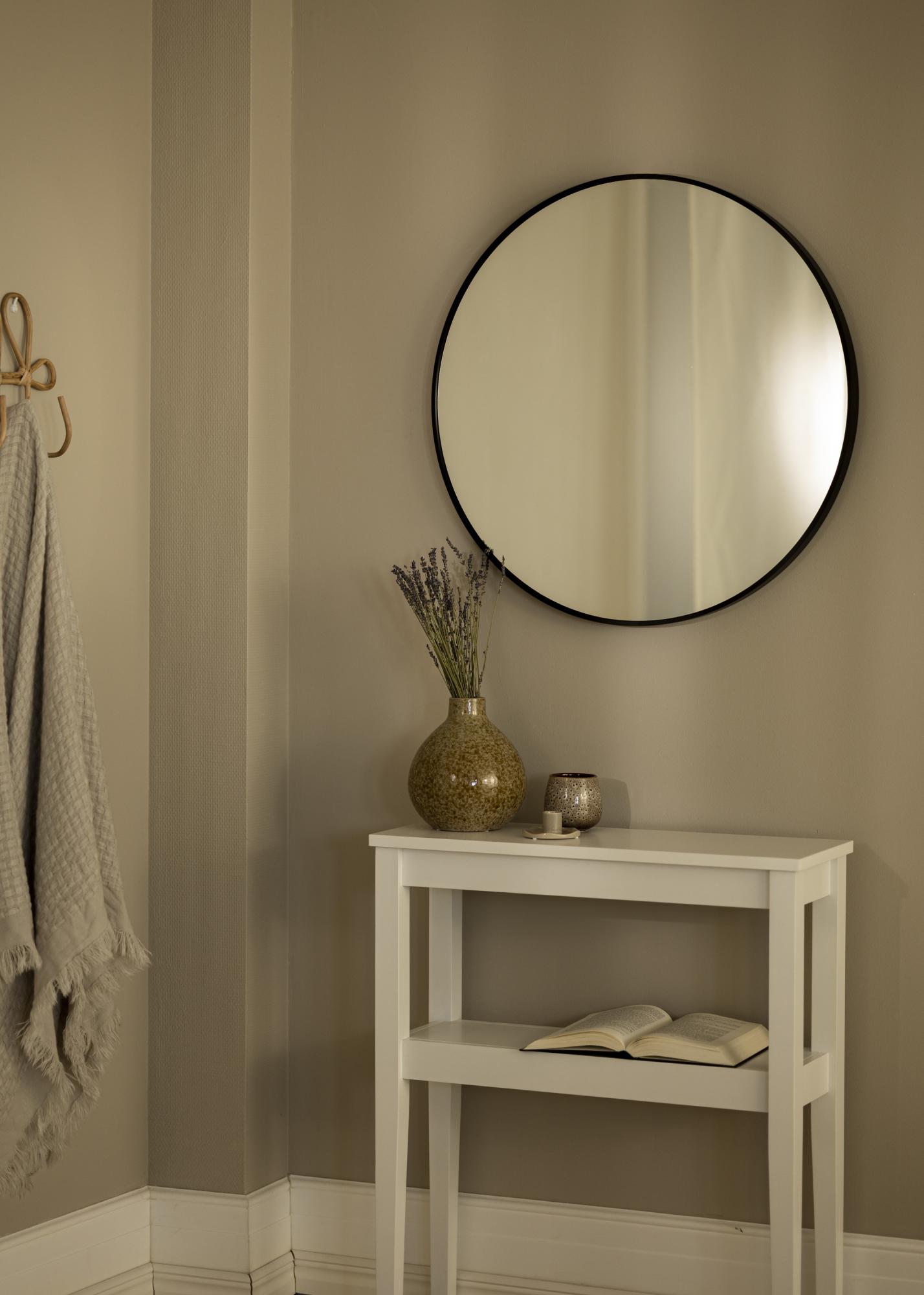 Dette speilet er tilgjengelig i flere forskjellige størrelser, hvorav denne varianten har en diameter på 70 cm. På speilets bakside sitter et ferdigmontert veggfeste for enkel og stabil plassering på veggen din. Egnede skruer og plugger følger med.