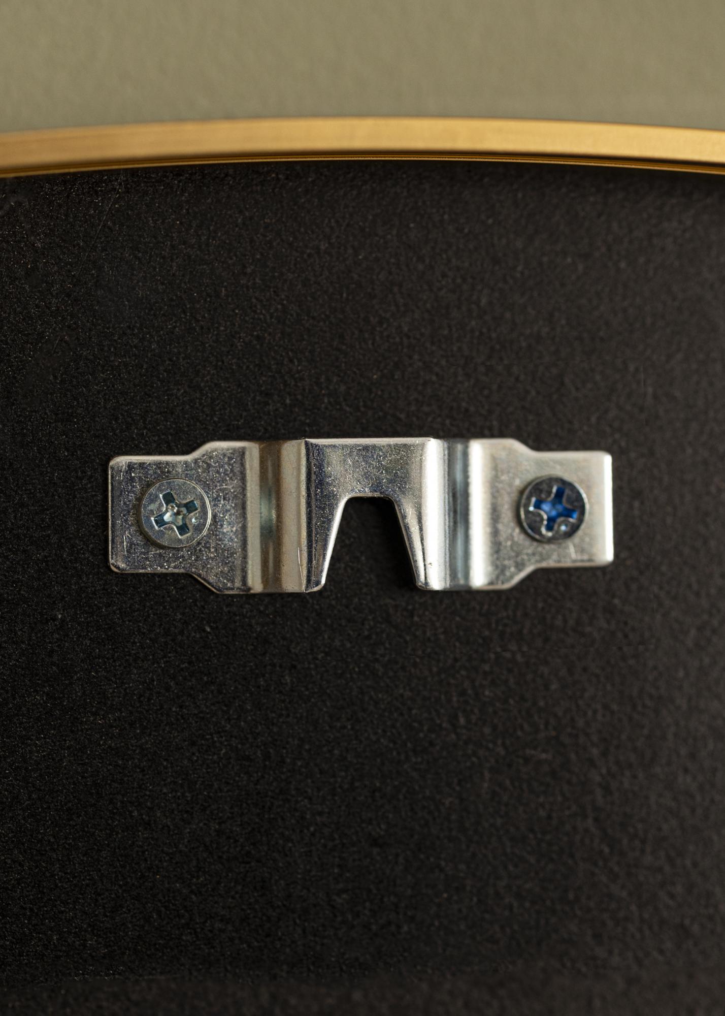 Et rundt speil i stilig svensk design med en metallramme i vakker gullfinish. Rammen har en børstet overflate, noe som gir et litt mattere utseende på den vakre gullfargen. Rammen er også trendy tynn, men har samtidig – avhengig av størrelse – en dybde på mellom 30–40 mm, noe som gjør at den stikker et stykke ut fra veggen og skaper en stilig 3D-effekt. Rammens dybde gjør også at speilet føles solid og robust, uten at det reduserer den minimalistiske følelsen på speilet.
