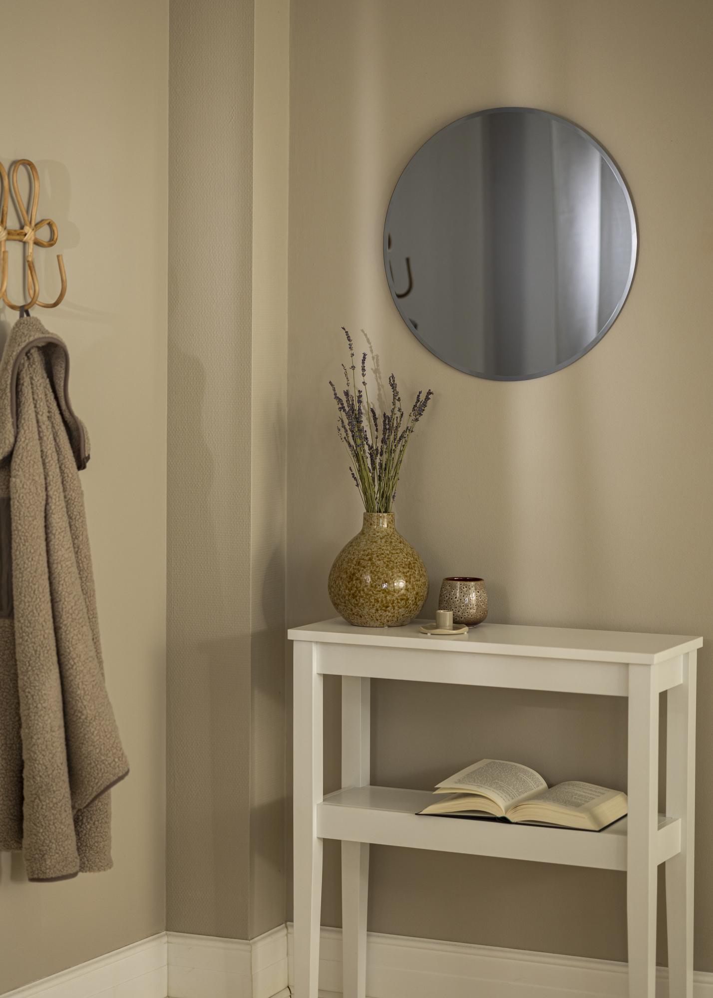 Et speil med tonet speilglass er en flott interiørdetalj med mye karakter. Dette er en rund variant med gråtonet glass – en mildere nyanse som gir en luksuriøs, hotellaktig følelse. Den grå fargen passer perfekt i hjem innredet i en mørkere stil, men gir også en fin kontrast på lyse vegger. Dette veggspeilet reflekterer lys som et vanlig speil, men i en mykere lystone.