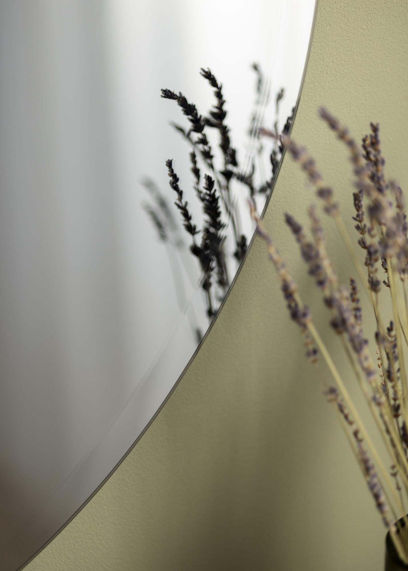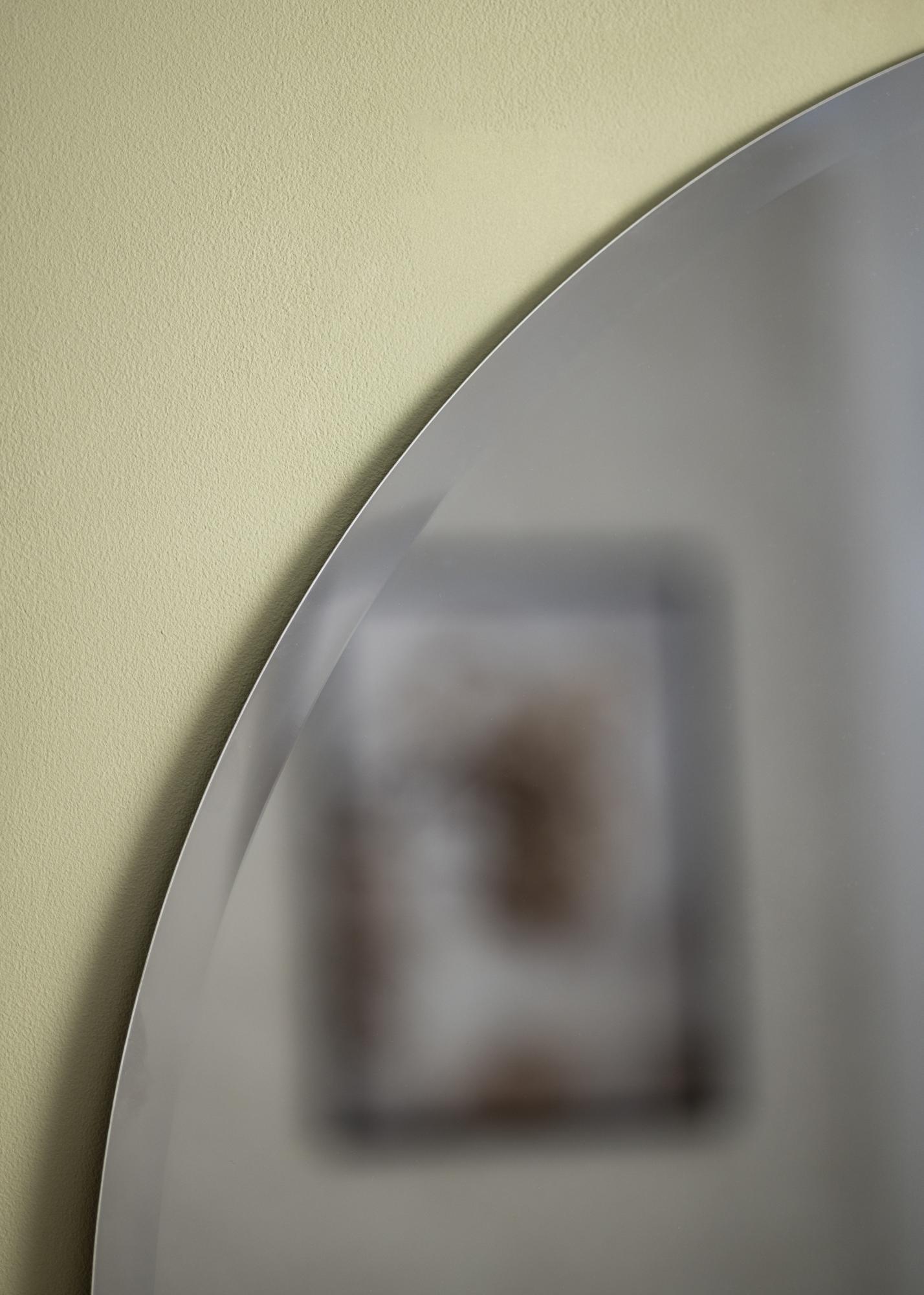 Den elegante følelsen som speilets form og farge formidler, forsterkes av at speilet ikke har noen ramme. I stedet er kantene dekorert med en pen fasettert kant, som gir speilet det lille ekstra.