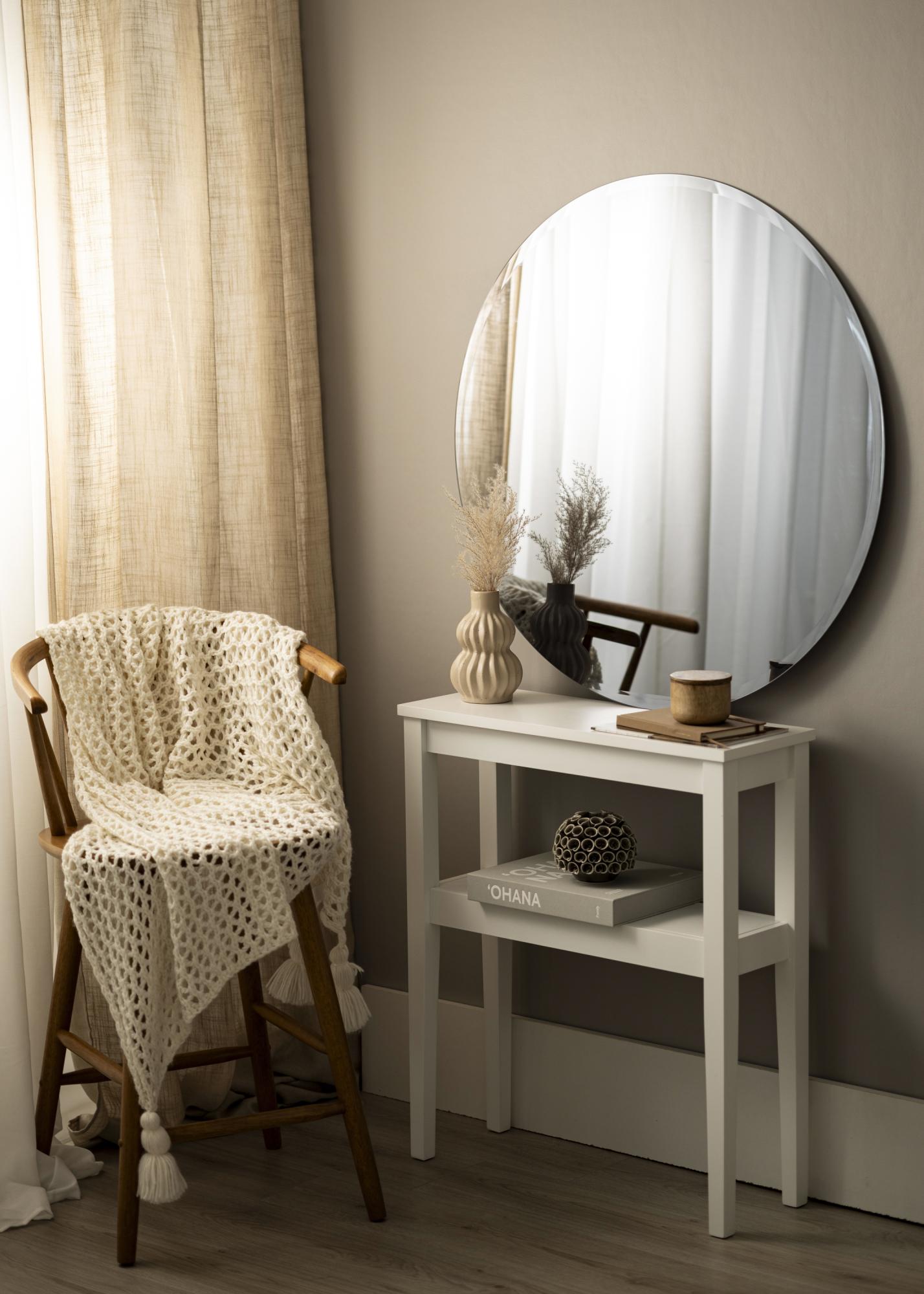 Et speil med tonet speilglass er en flott interiørdetalj med mye karakter. Dette er en rund variant med gråtonet glass – en mildere nyanse som gir en luksuriøs, hotellaktig følelse. Den grå fargen passer perfekt i hjem innredet i en mørkere stil, men gir også en fin kontrast på lyse vegger. Dette veggspeilet reflekterer lys som et vanlig speil, men i en mykere lystone.