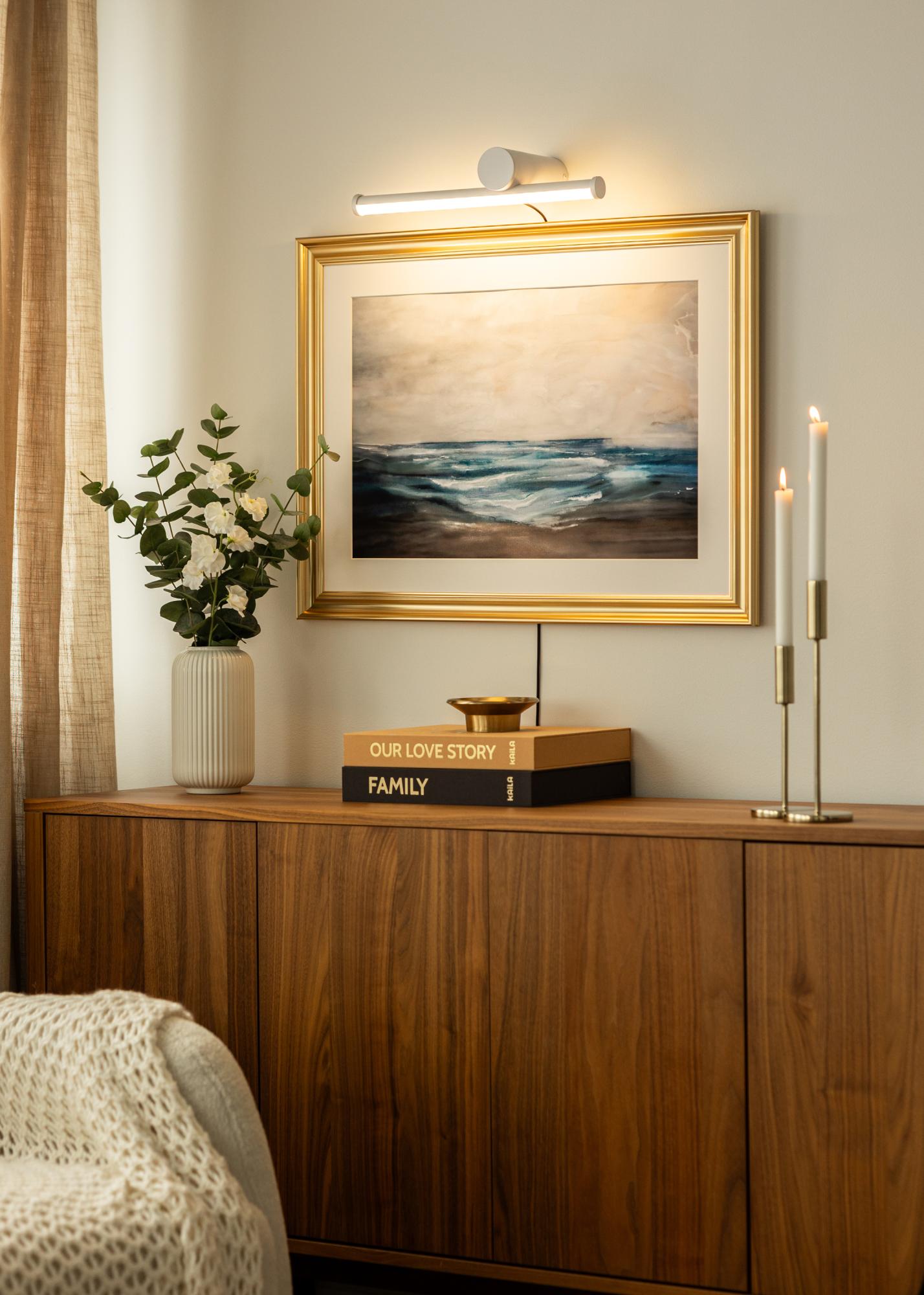Med sin rene og moderne hvite design er denne bildebelastningen et diskret og stilrent alternativ for å fremheve dine bilder eller fotografier. Lyset sprer seg mykt og jevnt over kunstverk opp til 80 cm i bredde, noe som gjør den til en allsidig løsning for både hjem og kontor. Med sine mål på 40 cm i lengde og 15,3 cm i dybde er belysningen tilpasset for å sitte pent over bildet uten å dra for mye oppmerksomhet fra kunstverket.