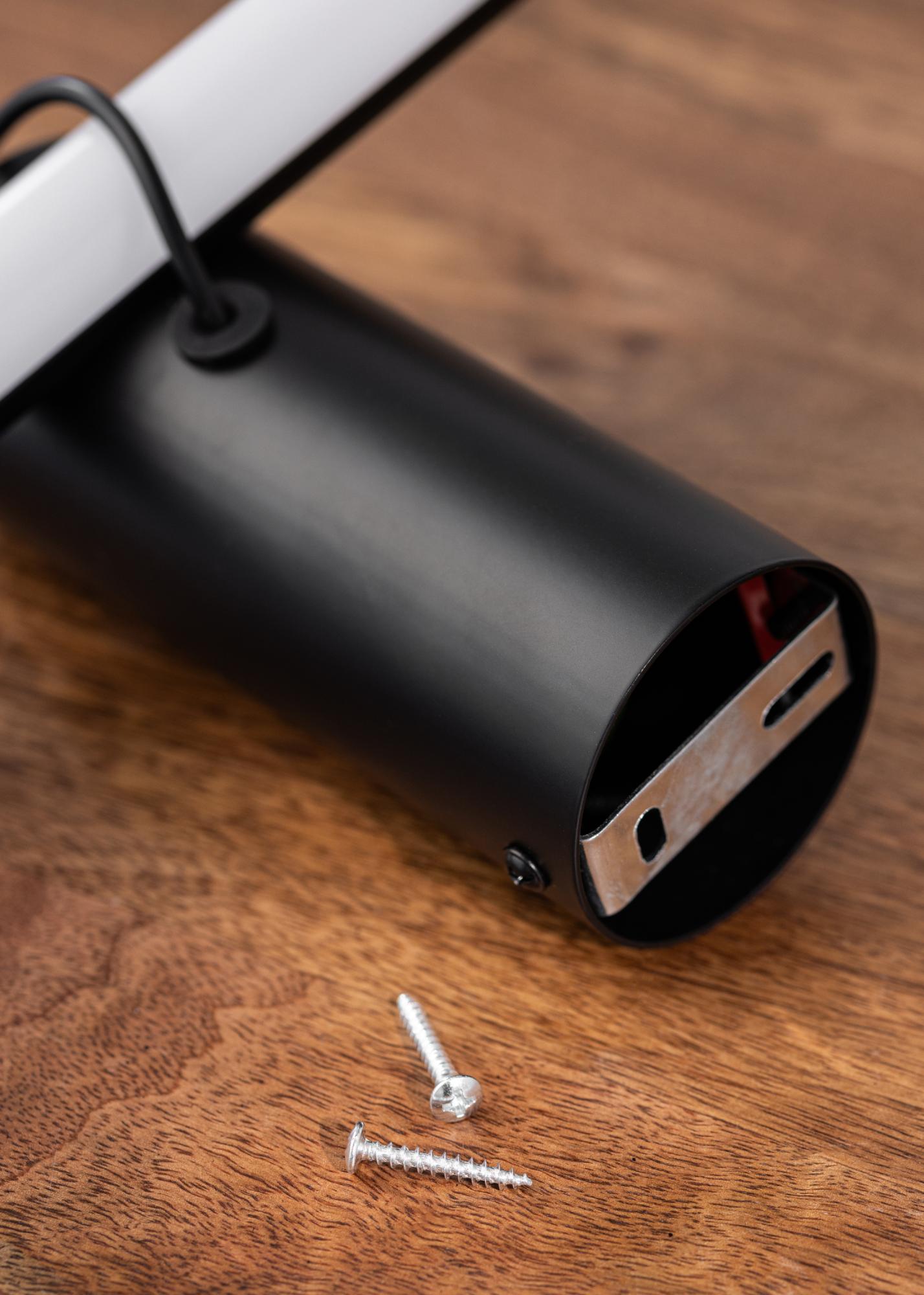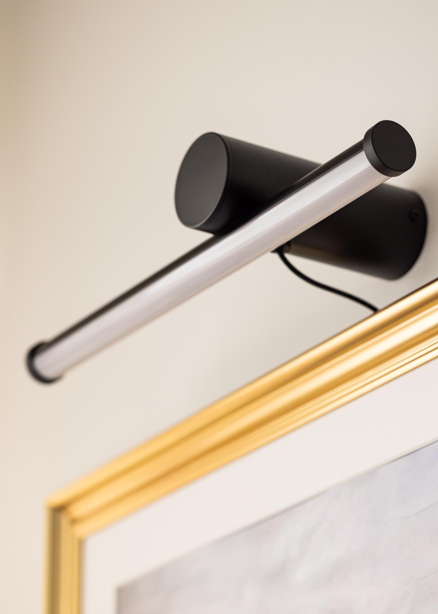 Bildelyset i svart tilbyr en stilren og moderne løsning for å belyse kunstverkene eller fotografiene dine. Med sin lengde på 40 cm og en dybde på 15,3 cm er det et diskret og praktisk valg som gir et mykt og jevnt lys over kunstverk opptil 80 cm i bredde.