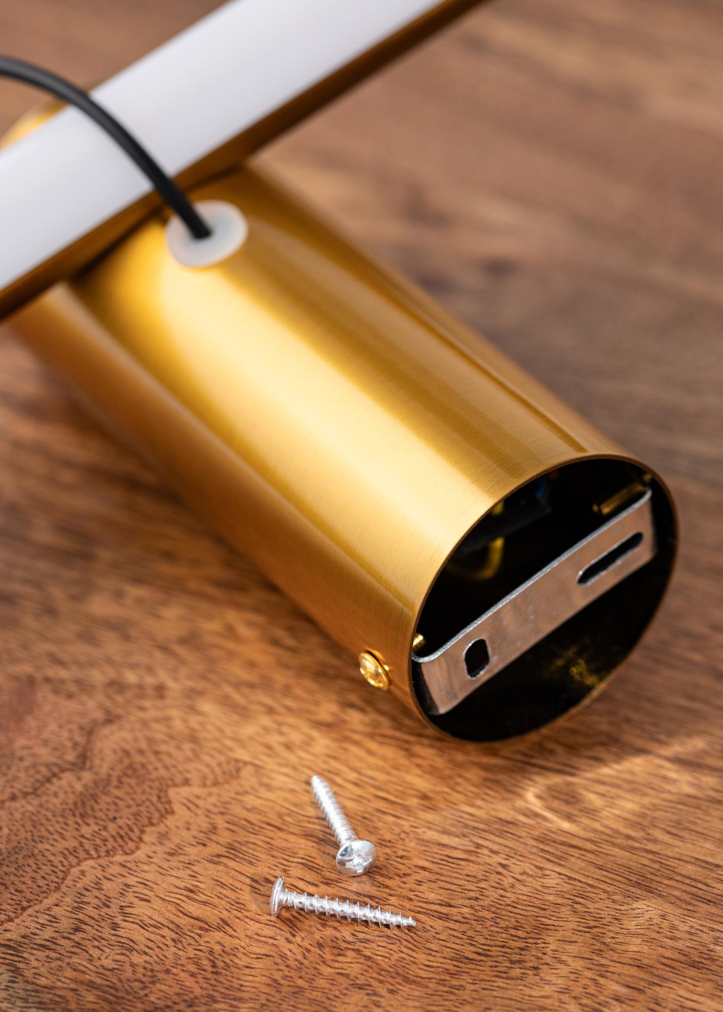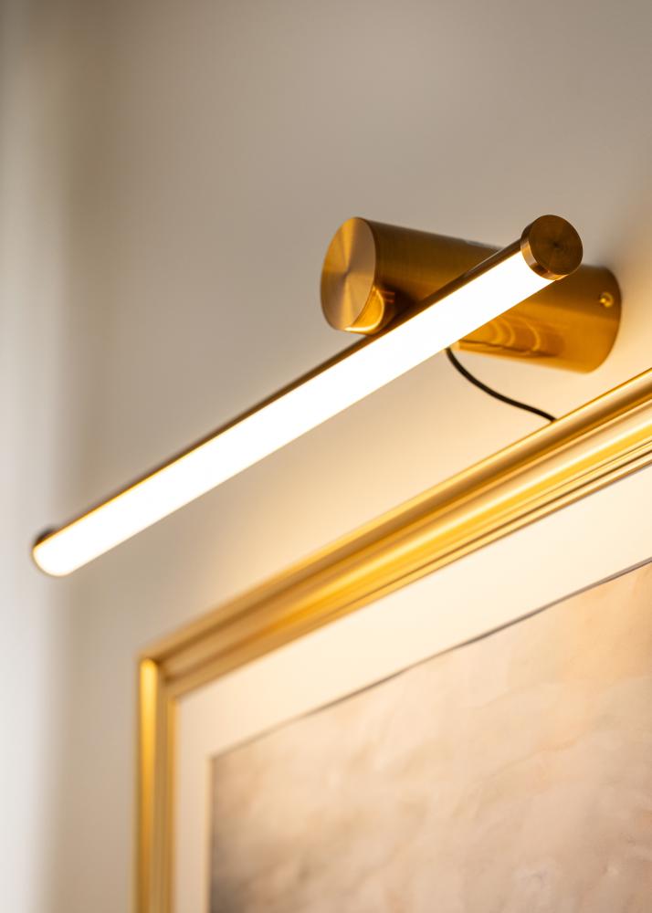 Denne bilde-belysningen er ikke bare en praktisk løsning for å belyse dine kunstverk, men fungerer også som en dekorativ detalj i seg selv. Med sin diskrete men stilrene design i messing blir den en elegant innramming for både moderne og klassiske kunstverk. Uansett om du har et stort bilde som krever fokus eller en mindre kunstinstallasjon, vil denne belysningen gi det rette lyset og fremheve dine verk på beste måte.