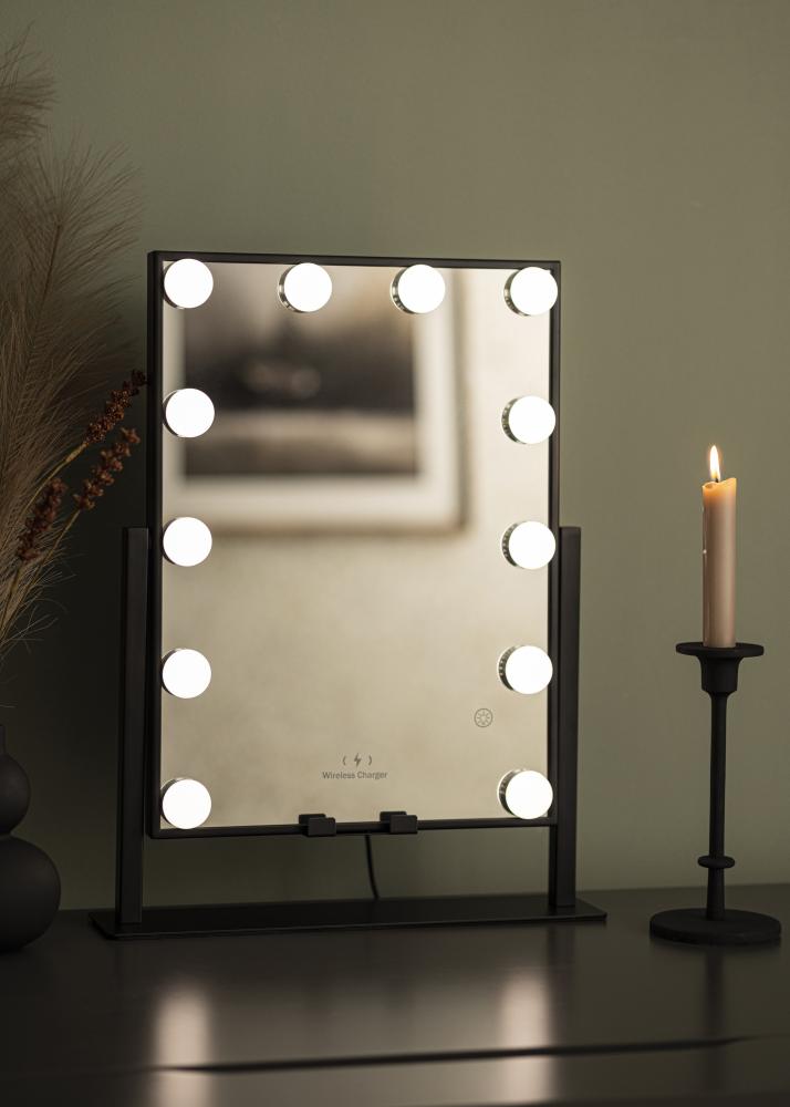 KAILA Sminkespeil Hollywood 12 med Trådløs Lader Svart 30x41 cm