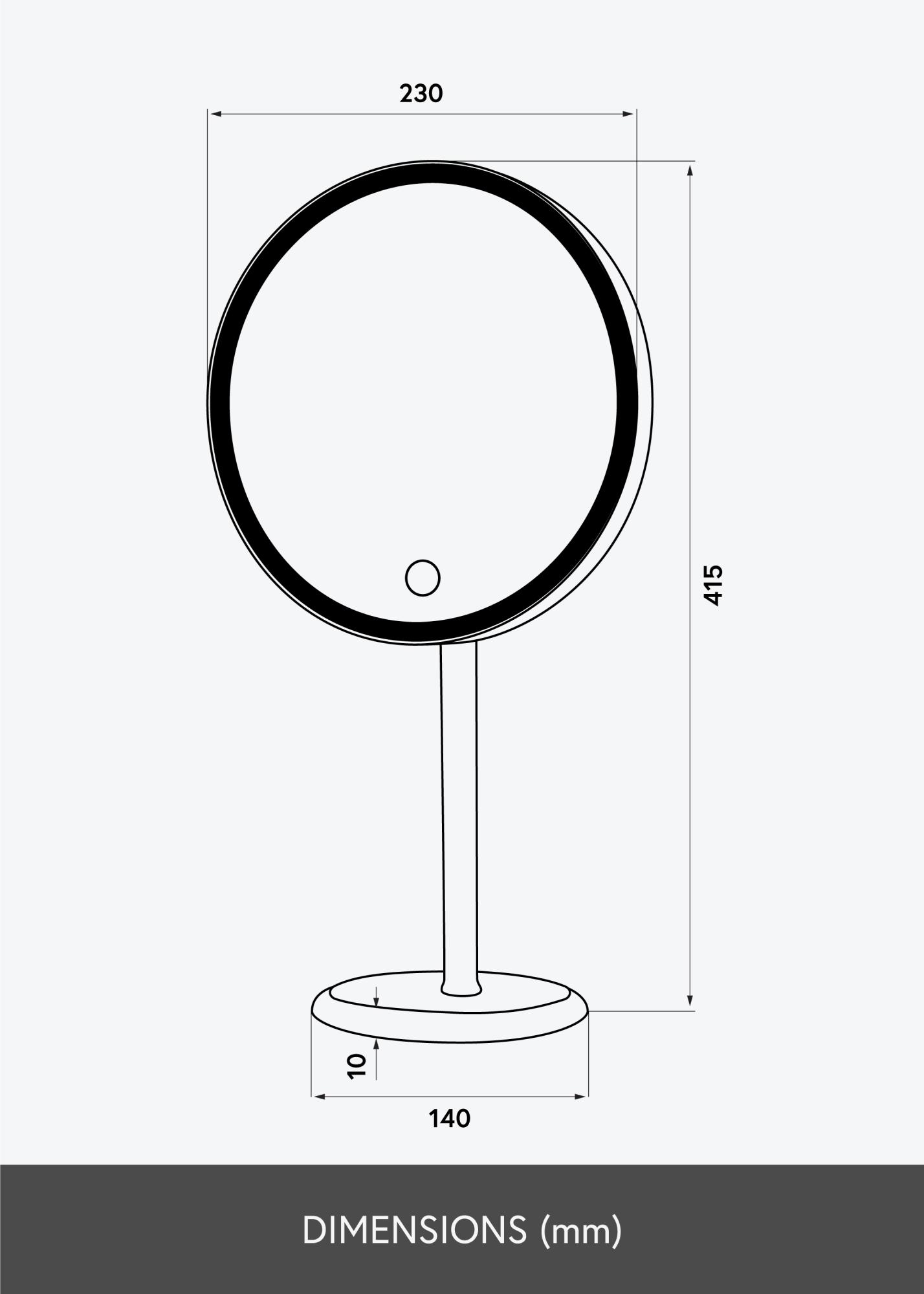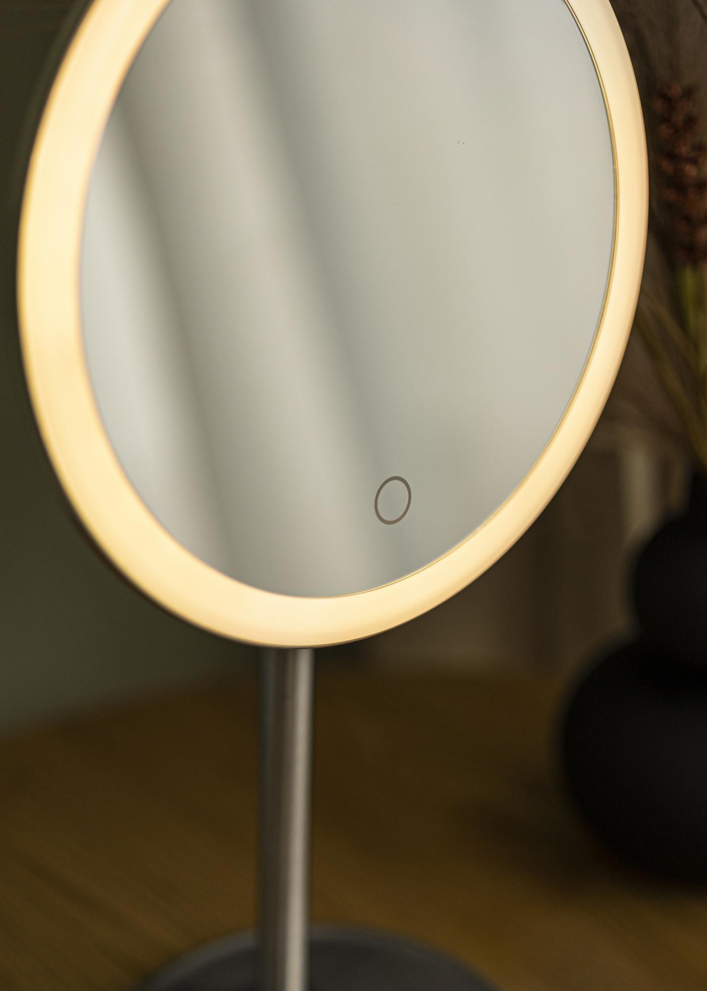 Dette er et klassisk baderomsspeil med LED-belysning – perfekt når du vil speile deg med godt fokus. Den innebygde belysningen har justerbar lysstyrke og fargetemperatur. Alt du trenger å gjøre er å holde på speilets touch-knapp i noen sekunder, så endres lysinnstillingene. Speilet har et innebygd batteri som lades opp med ladekabelen som følger med.