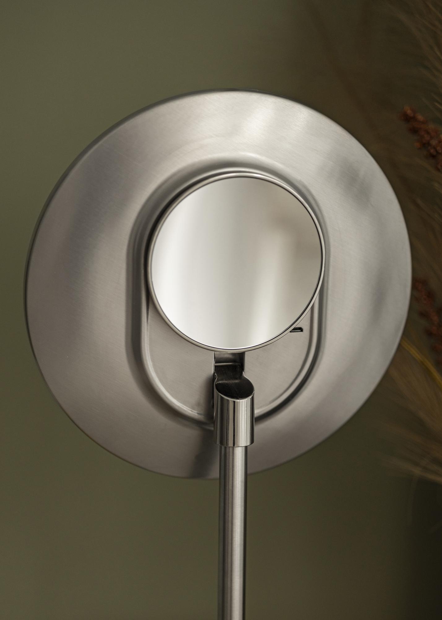 Det har et mindre speil med 10x zoom, som er fint å bruke når du vil ha et skarpt nærbilde av en del av ansiktet. Det lille speilet kan settes på baksiden av hovedspeilet, men det kan også tas av hvis du foretrekker å holde det i hånden ved bruk.