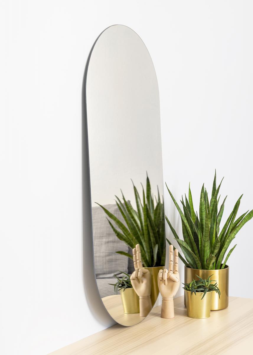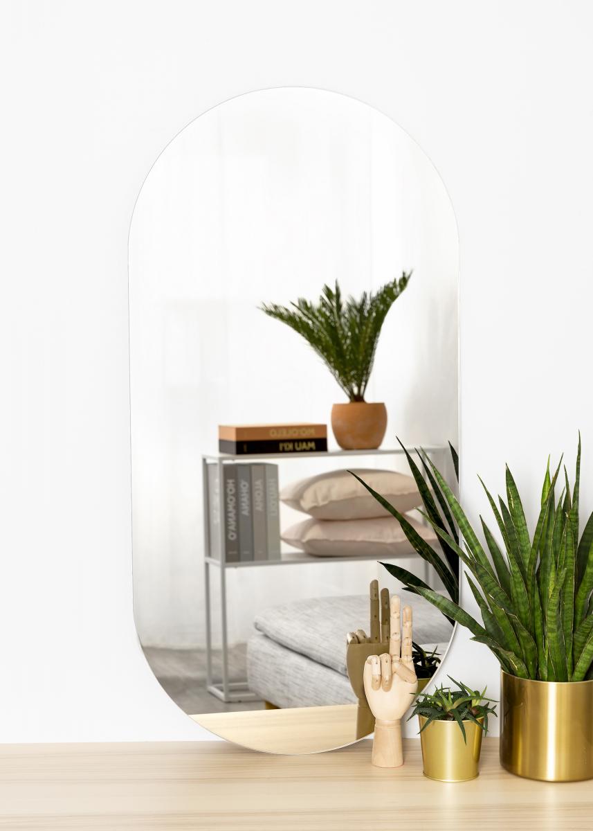Med et ovalt speil som dette tilfører du ikke bare funksjon, men også eleganse og en myk, innbydende følelse i hjemmet ditt. Det stilrene speilet er tilgjengelig i flere størrelser, hvorav denne varianten har de sjenerøse dimensjonene 50x100 cm.