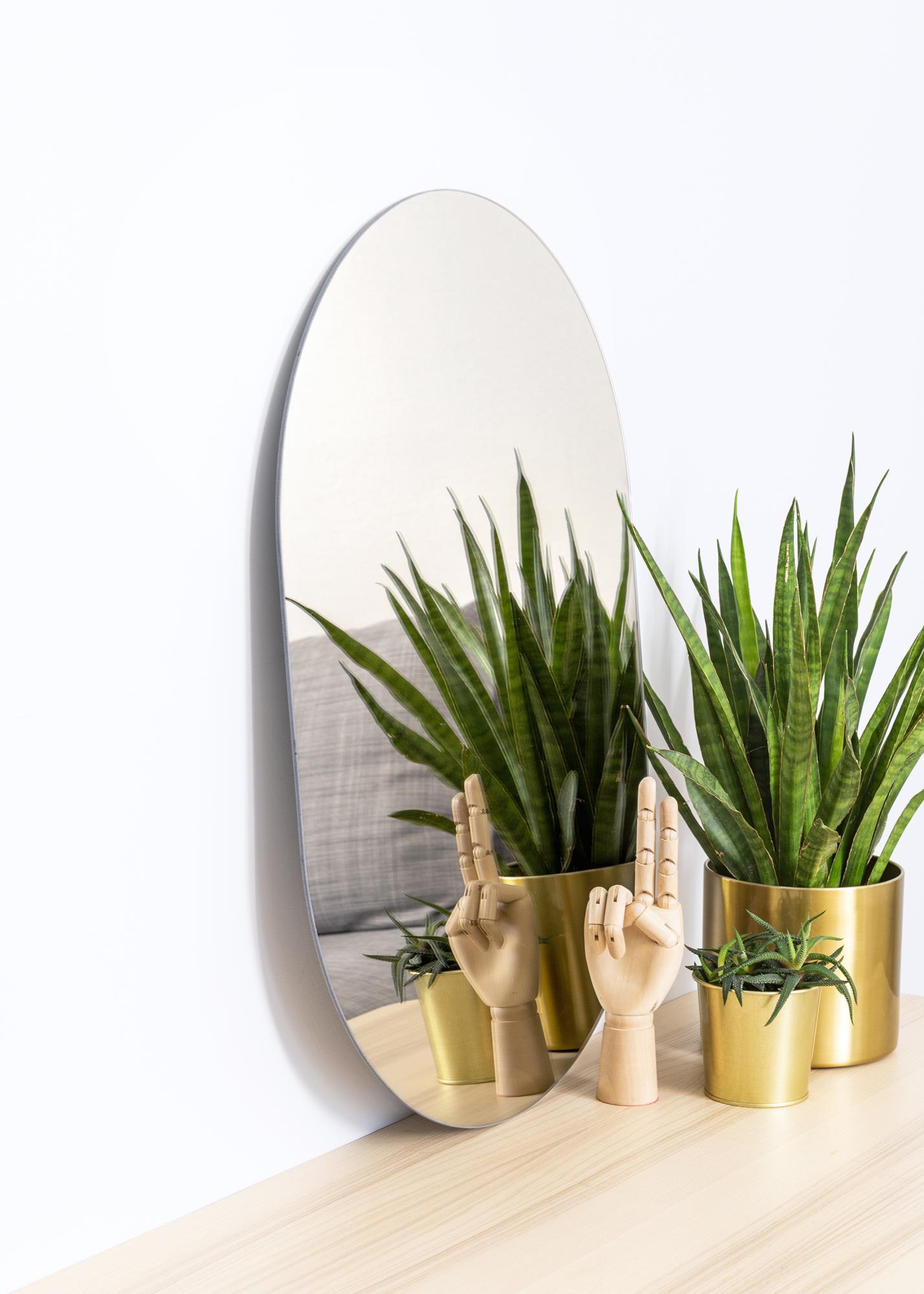 Med et ovalt speil som dette skaper du en myk og innbydende atmosfære i hjemmet ditt. Dette speilet er bare 4 mm tynt, noe som i kombinasjon med den myke formen gir deg et veldig elegant veggspeil. Det er et speil med et design som er like moderne som det er tidløst, og det passer derfor til både moderne og klassiske innredninger.