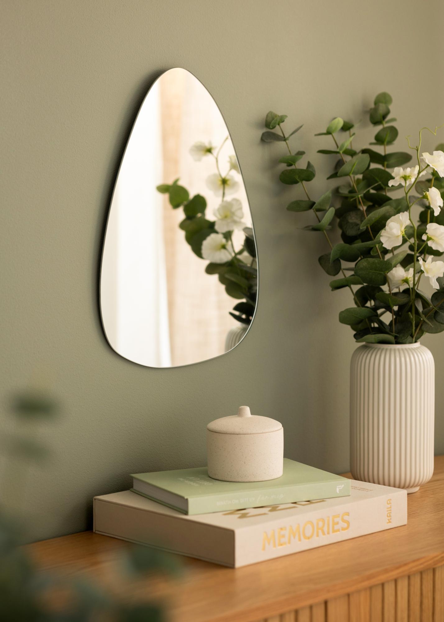 Et asymmetrisk speil blir en interessant og trendy interiørdetalj i hjemmet ditt! Dette speilet er dessuten veldig tynt, noe som forsterker den stilrene fremtoningen.