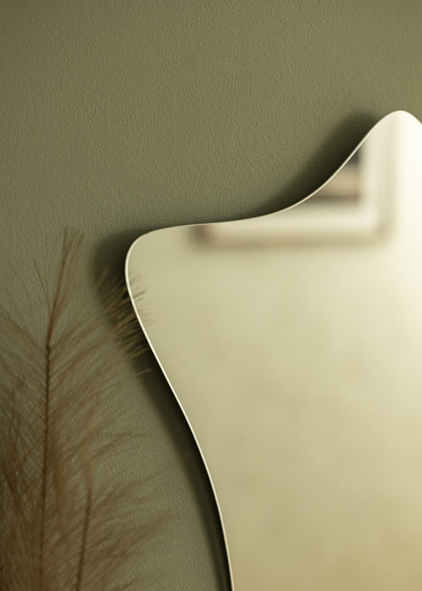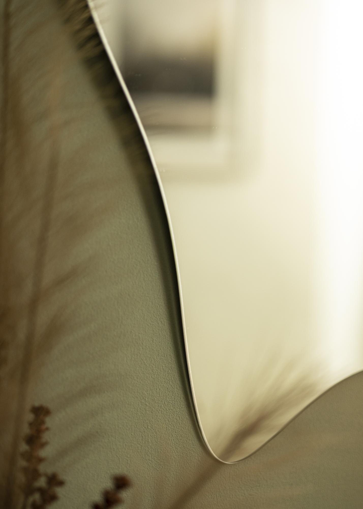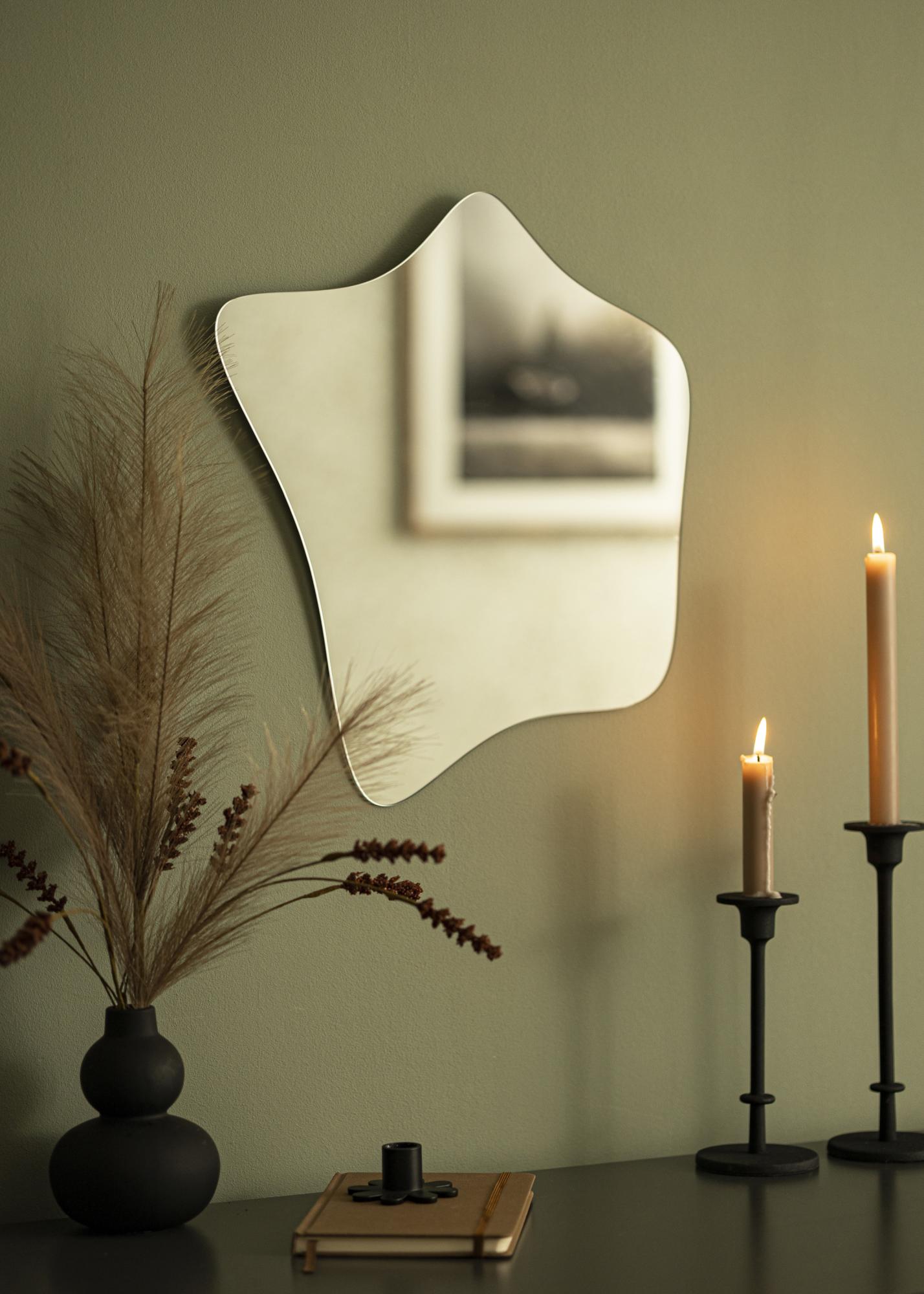 Modern minimalisme og en naturinspirert form – denne veggspeilet gir deg det beste fra to verdener! Den unike formen bringer tankene til blomstrende anemoner, samtidig som den rammeløse designen og det 4 mm tynne speilglasset gir speilet et elegant og moderne utseende.