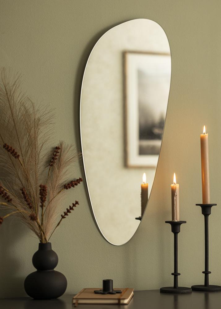 Denne veggspeilet er minimalisme på sitt beste – med et design uten ramme og en asymmetrisk, langstrakt form. Speilglassets tynnhet, på bare 4 mm, forsterker den stilrene minimalistiske følelsen ytterligere.