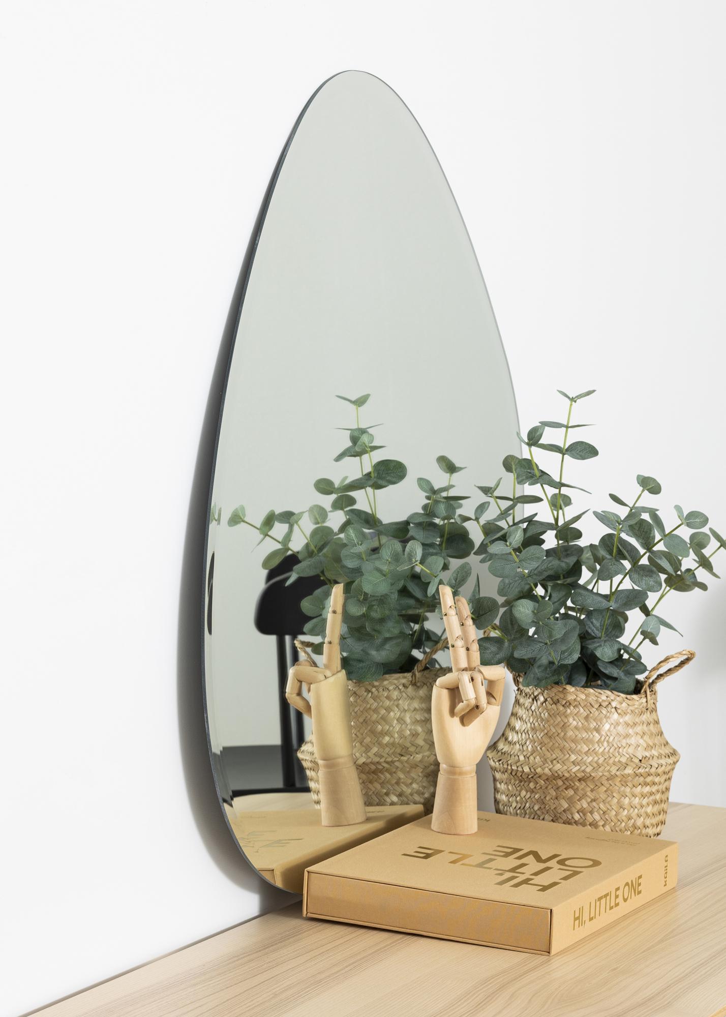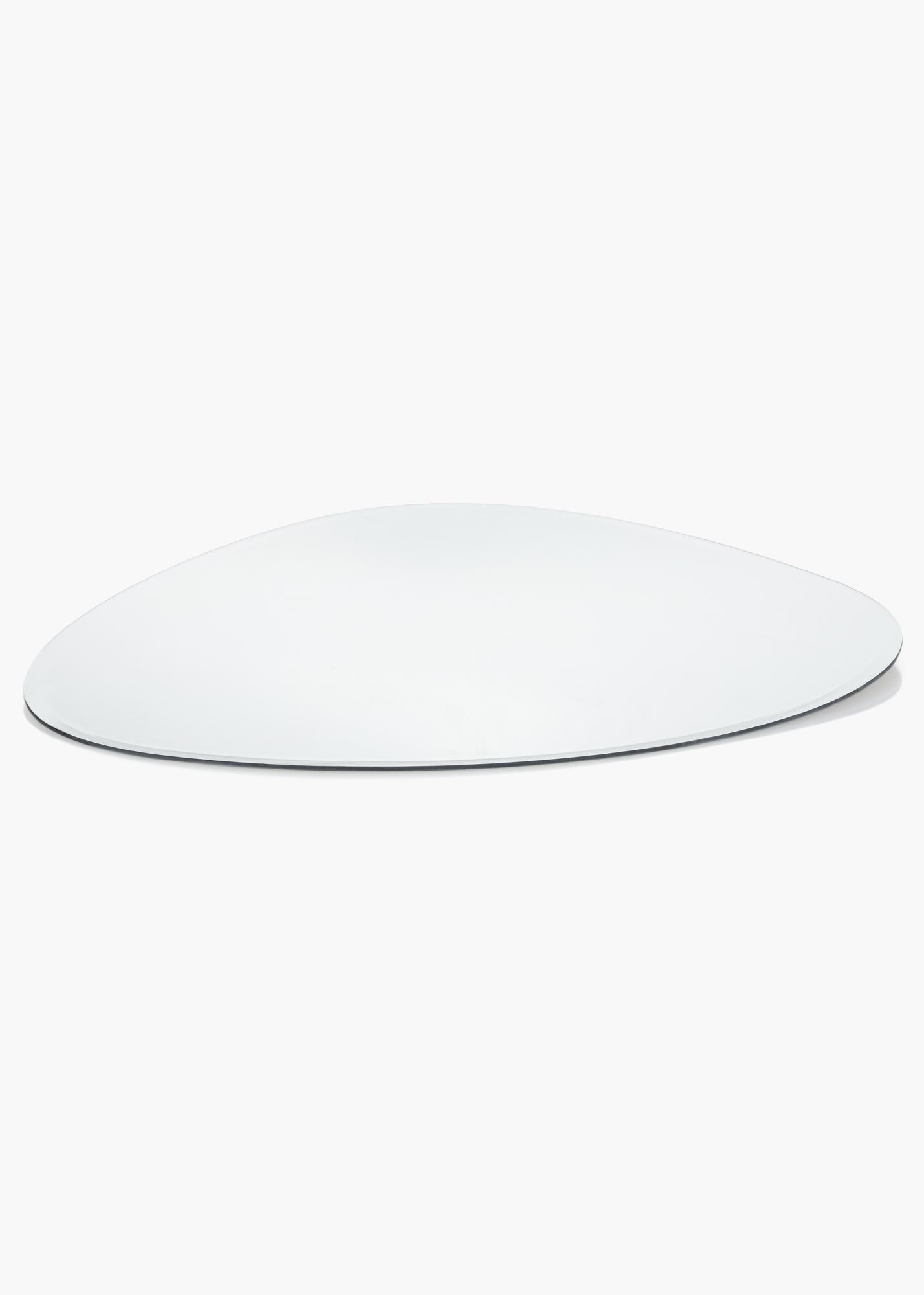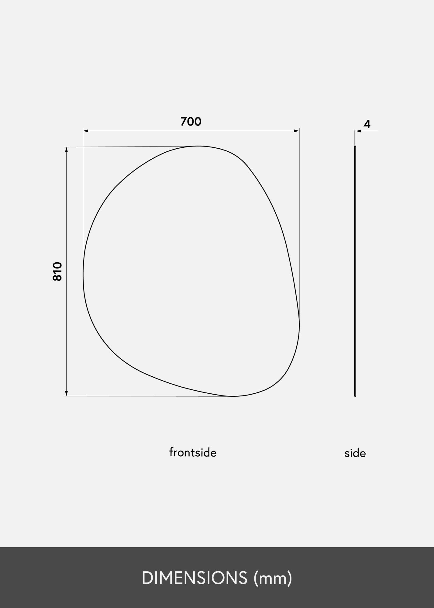 Dette veggspeilet fra KAILA har en elegant asymmetrisk form som minner om en dråpe. Speilet er veldig tynt og har ingen ramme, noe som i kombinasjon med den luksuriøst fasettslipte kanten forsterker det elegante og moderne inntrykket. Det er også et svært dekorativt veggspeil som garantert tiltrekker seg oppmerksomhet – uansett om det plasseres i stuen, gangen eller på soverommet. Speilet måler 70x81 cm.