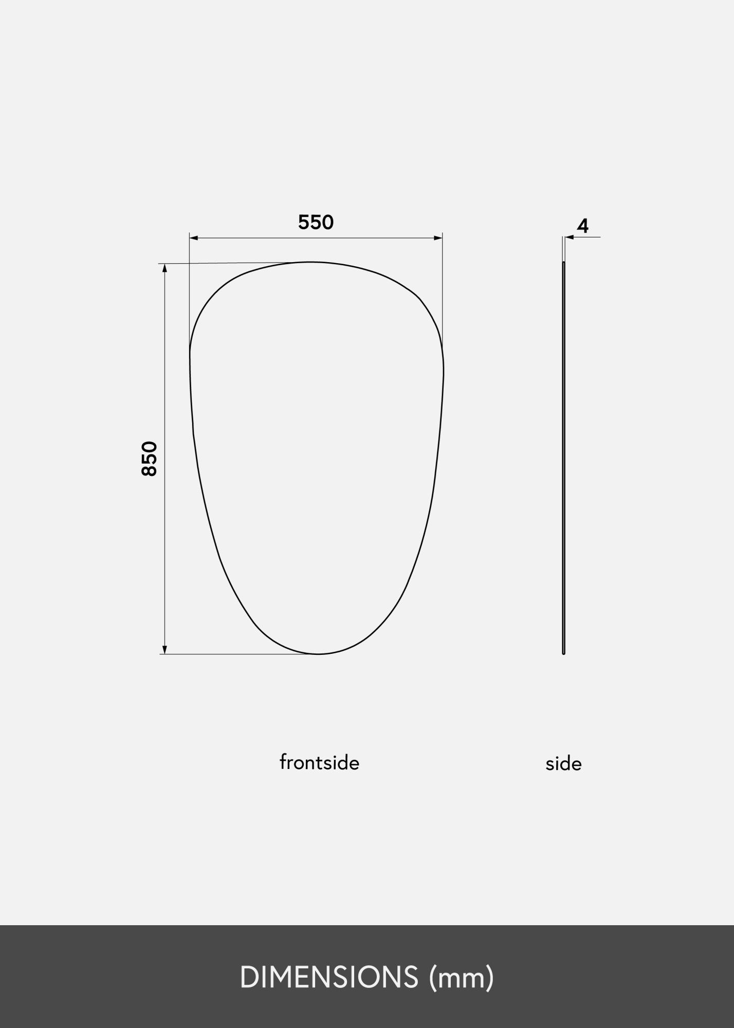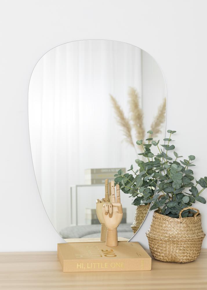 Dette asymmetriske speilet fra KAILA blir et moderne innslag i interiøret ditt. Speilet har en myk form som nærmest kan beskrives som ujevnt oval. Veggspeilet er tynt og har ingen ramme, noe som forsterker den elegante følelsen.