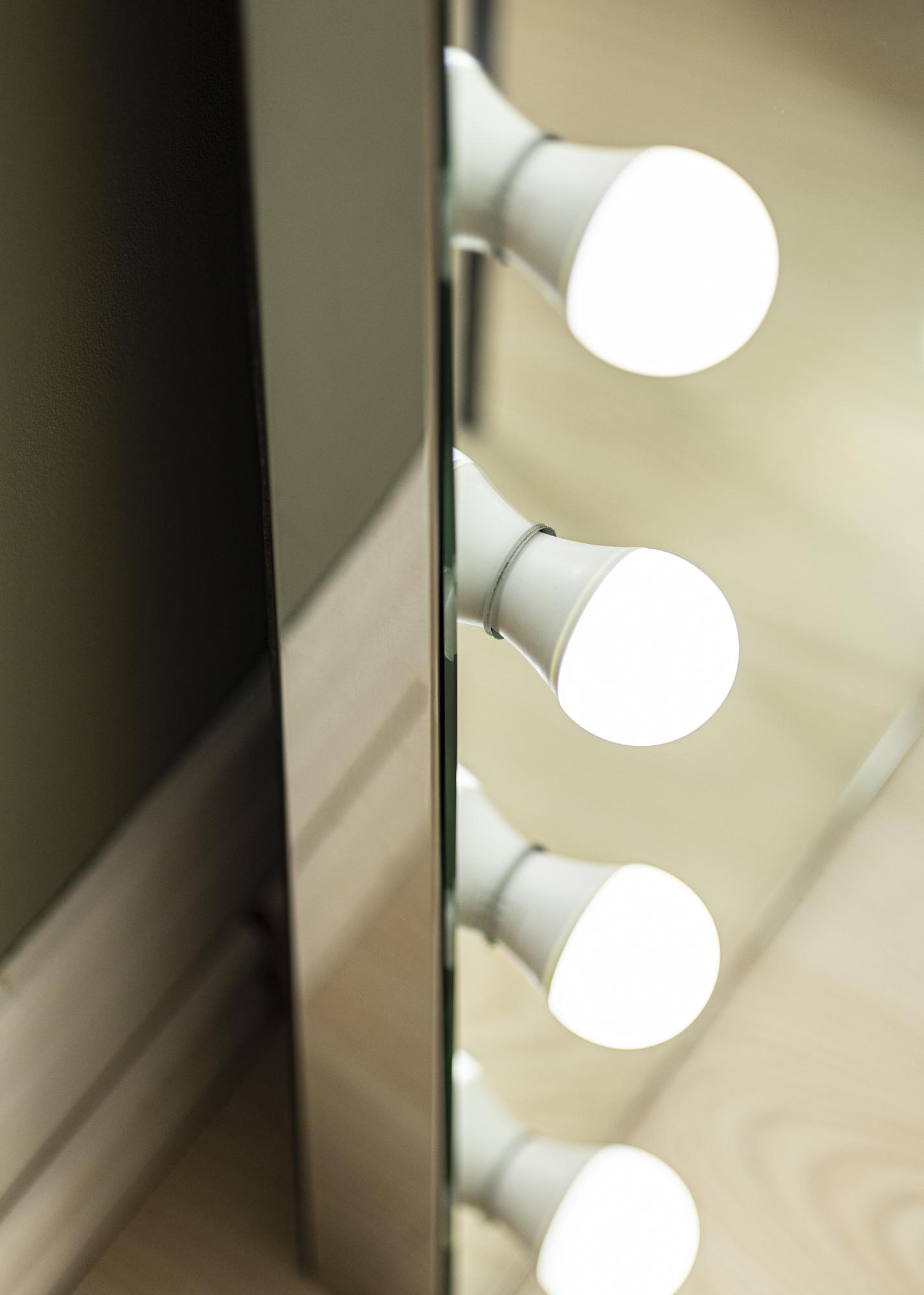 Dette gangspeilet har innebygd LED-belysning i form av 22 LED-lyspærer som vakkert rammer inn speilflaten og gir speilet sitt luksuriøse utseende. På den ene langsiden av speilet er det en liten dreieknapp som du kan bruke til å dimme belysningen med til en lysstyrke som passer for deg.