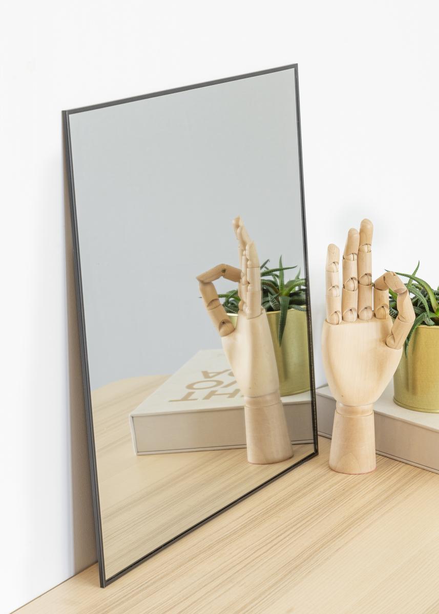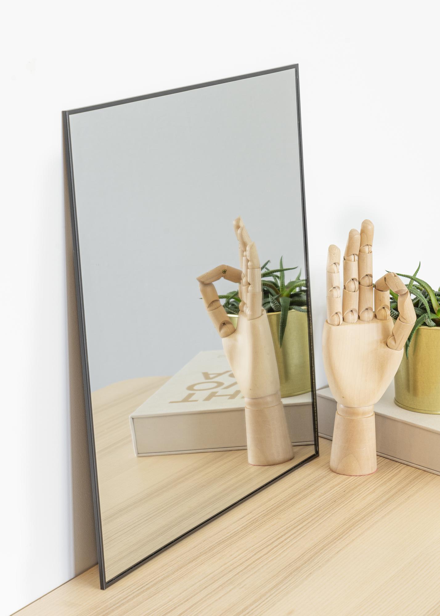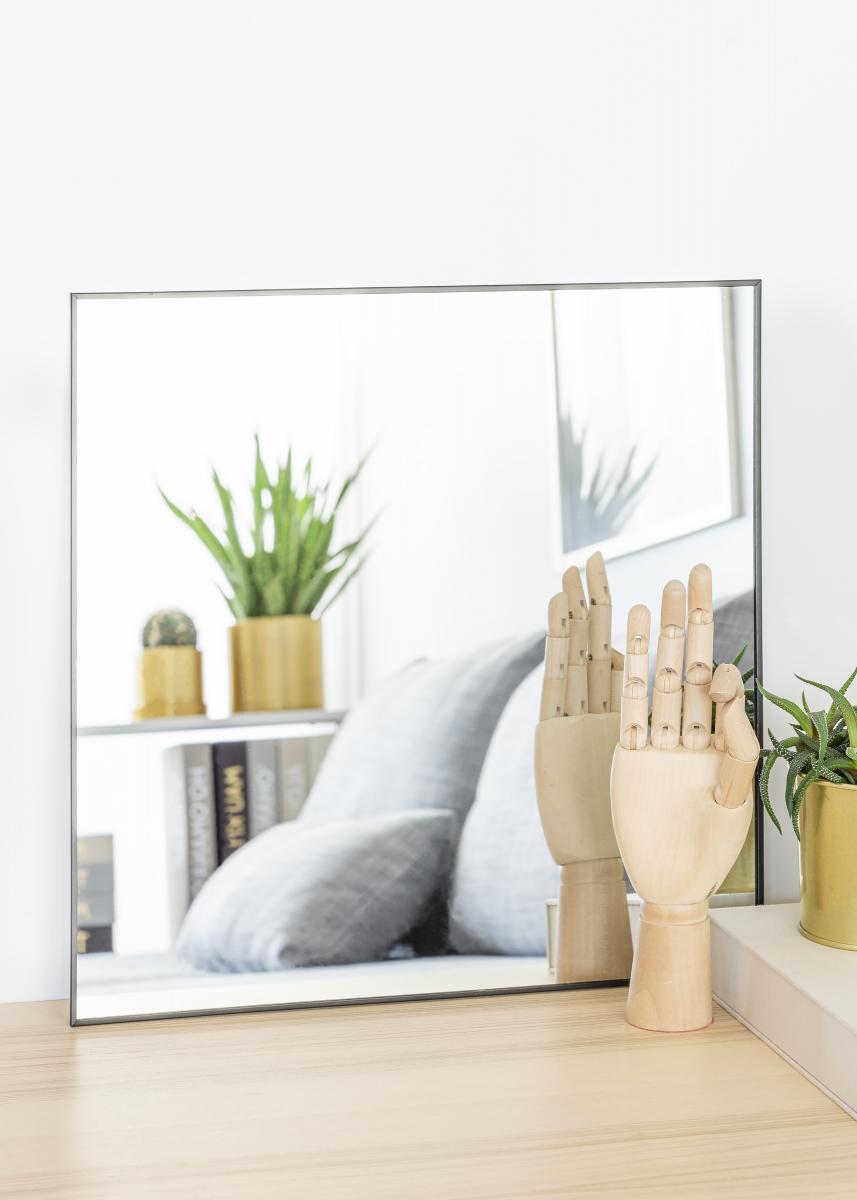 Dette firkantede speilet fra KAILA måler 40x40 cm, har et trendy utseende og en stilig svart kant som fint rammer det klare speilglasset. Plasser dette stilige speilet der det kan komme til sin funksjonelle og dekorative rett - for eksempel i en gang, stue eller soverom.