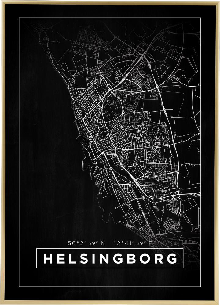 Kart - Helsingborg - Poster - Svart (13x18 cm)