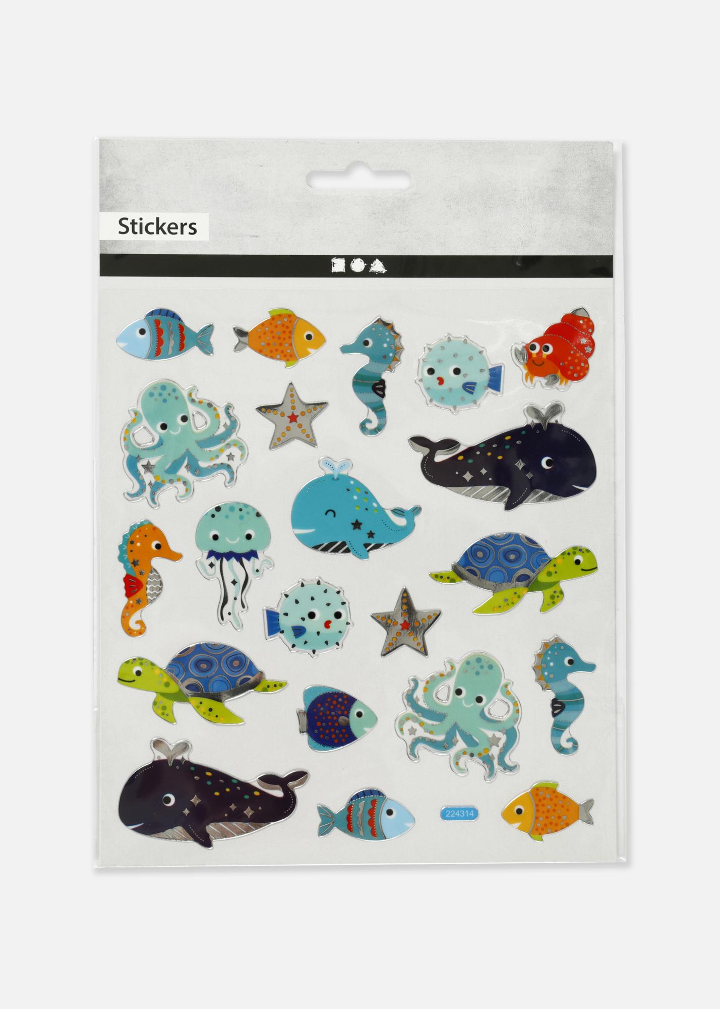 Oppdag magien under overflaten med våre Klistremerker Havets dyr! Disse selvklebende plastklistremerkene måler 15x16,5 cm og kommer på et ark fylt med detaljerte og glanset folieillustrasjoner av havets fascinerende innbyggere. Perfekte for å raskt og enkelt gi dine ting et løft.