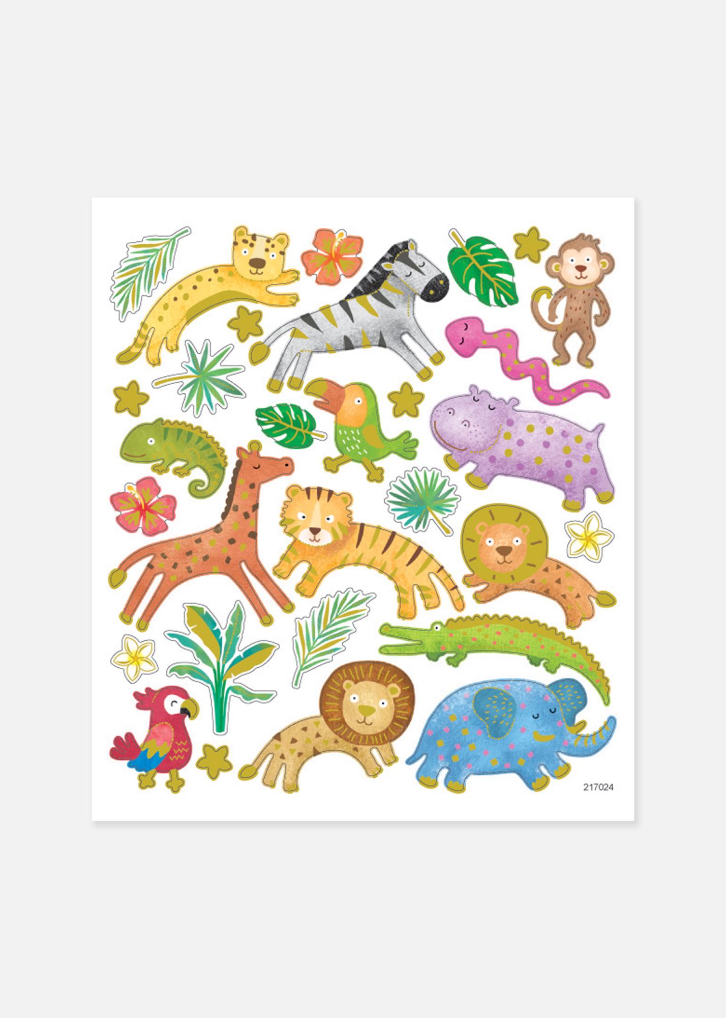 Oppdag magien med våre Klistremerker Ville dyr! Disse selvklebende papirklistremerkene måler 15x16,5 cm og kommer på et ark fylt med detaljerte og glansfulle folieaksenter. Perfekte for å raskt og enkelt gi tingene dine en personlig touch.