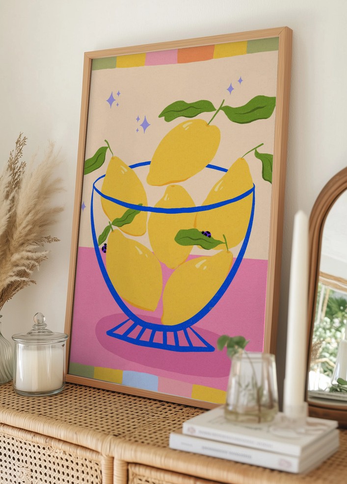 https://www.bgafotobutikk.no/lemons-in-a-bowl-retro-with-colorful-frame-plakat-100x140-cm