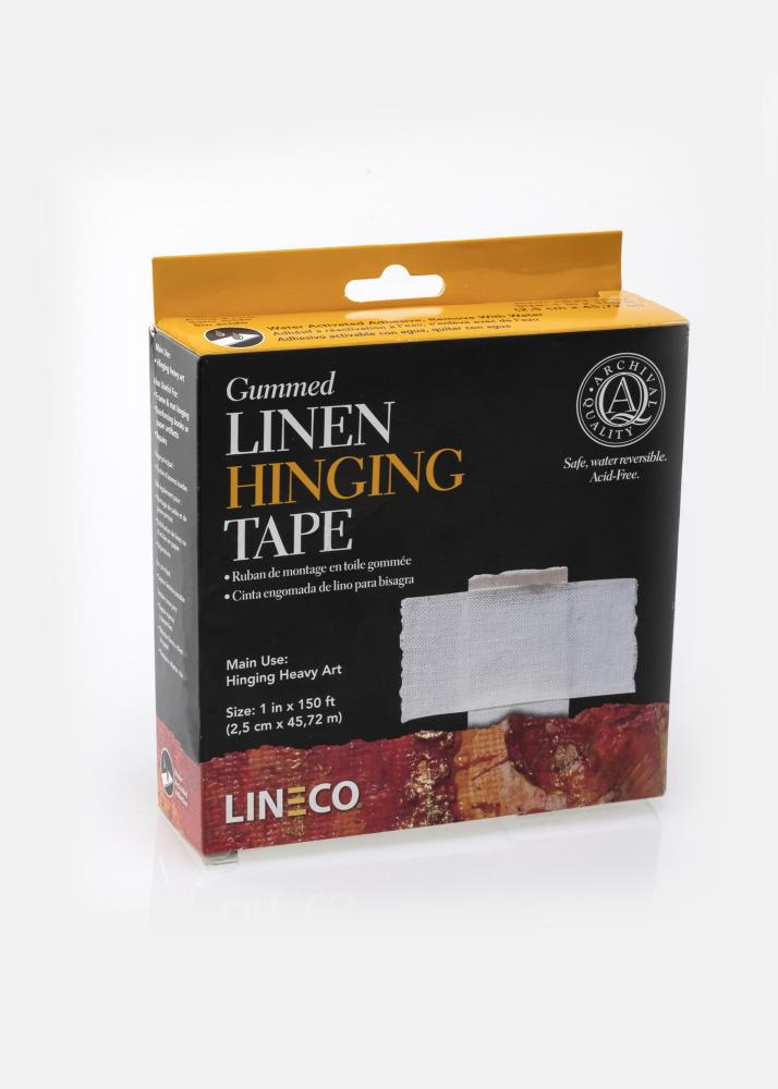 Varenummer:Gummiert syrefri lintape. For å henge opp tyngre kunstverk. Legg press på remsen i 15min før bruk. 25 mm x 45,72 m, 63gm2.