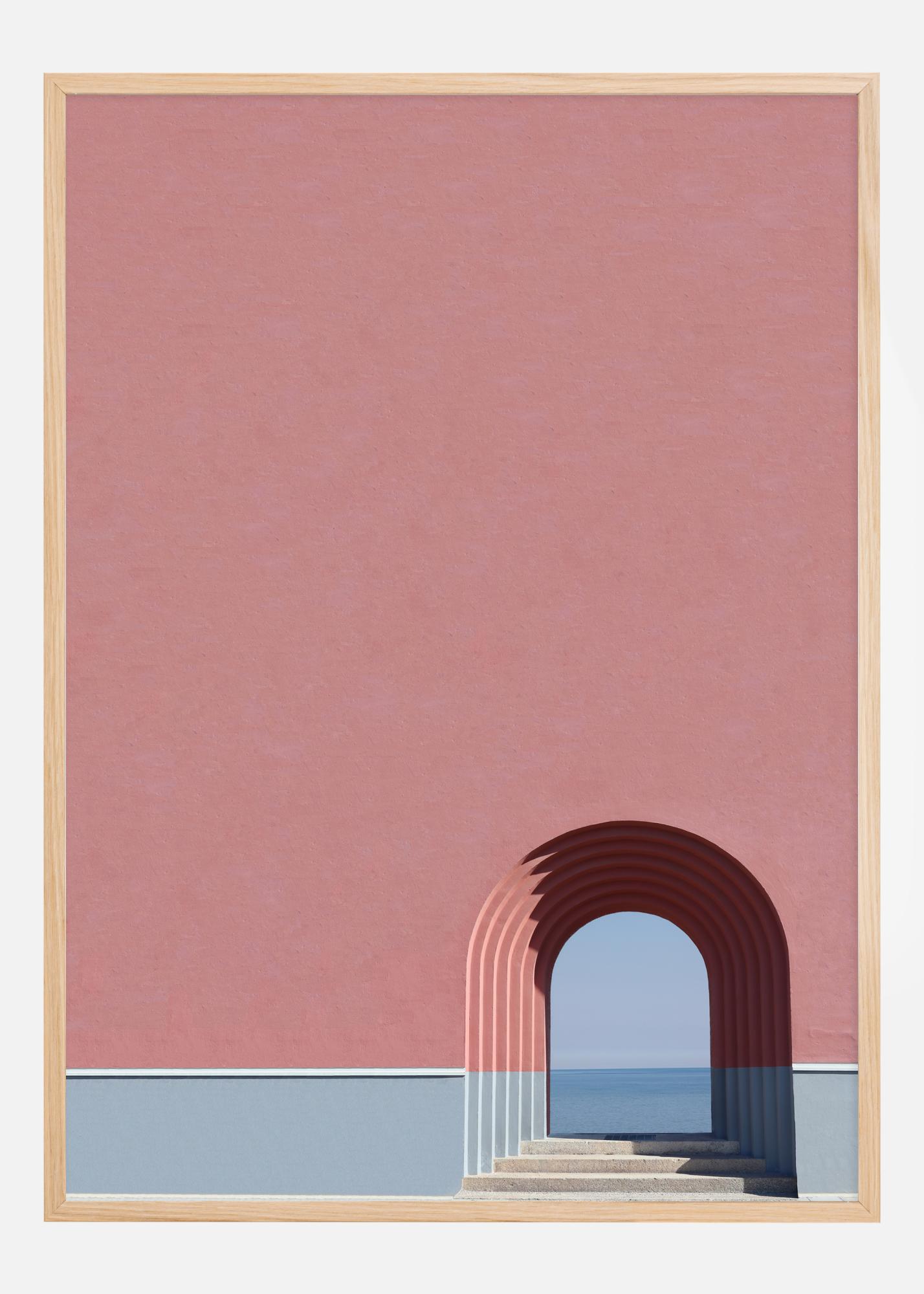 Denne posteren med tittelen "Look the Ocean" inviterer til kontemplasjon gjennom sin enkle og rene design. Bildet fremhever en seren arkitektonisk bue som åpner seg mot den uendelige horisonten av havet. Motivet spiller med kontrasten mellom den myke rosa nyansen av veggen og det rolige blå havet, og skaper en rolig og harmonisk følelse.
