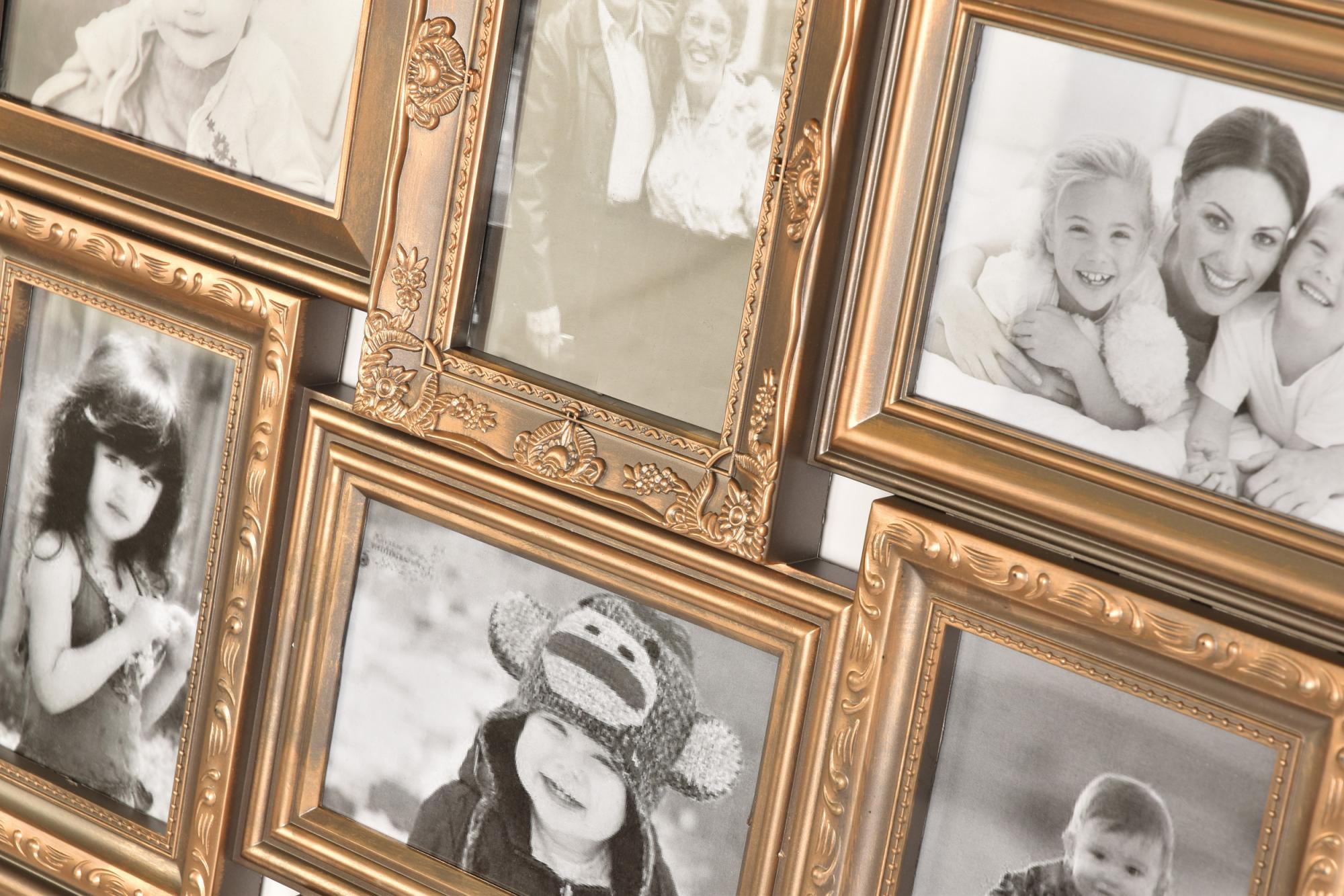 • Gullcollageramme i retrostil 12 stk bilder