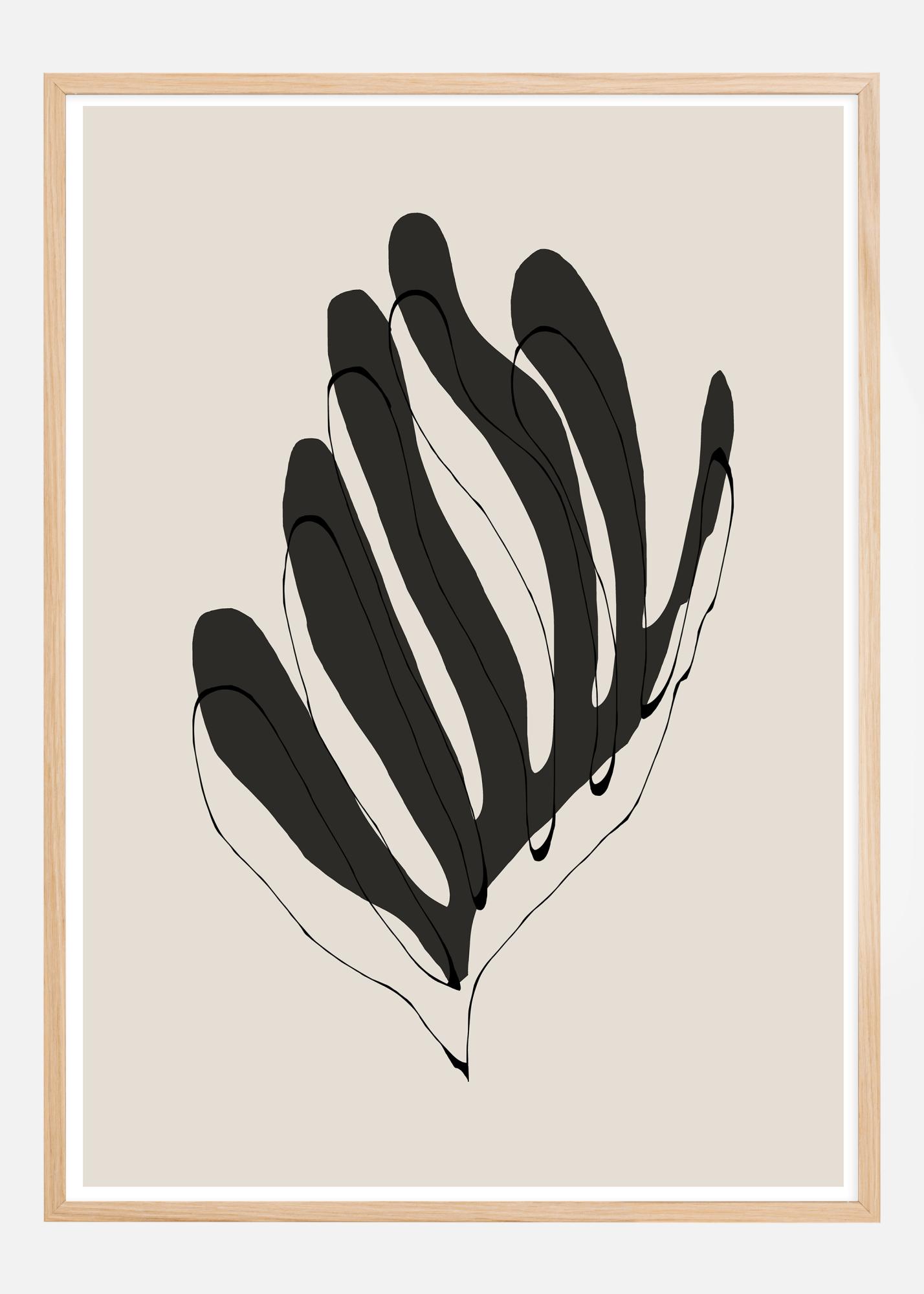 Denne posteren utstråler en følelse av moderne kunst med sin abstrakte tolkning av blomster og natur. De sveipende svarte formene som reiser seg oppover ligner kronblader i en uvanlig men fengslende komposisjon. Denne minimalistiske designen bruker en fargepalett begrenset til svart mot en varm off-white bakgrunn, noe som gir en sterk kontrast og gjør at illustrasjonen fremtrer elegant.
