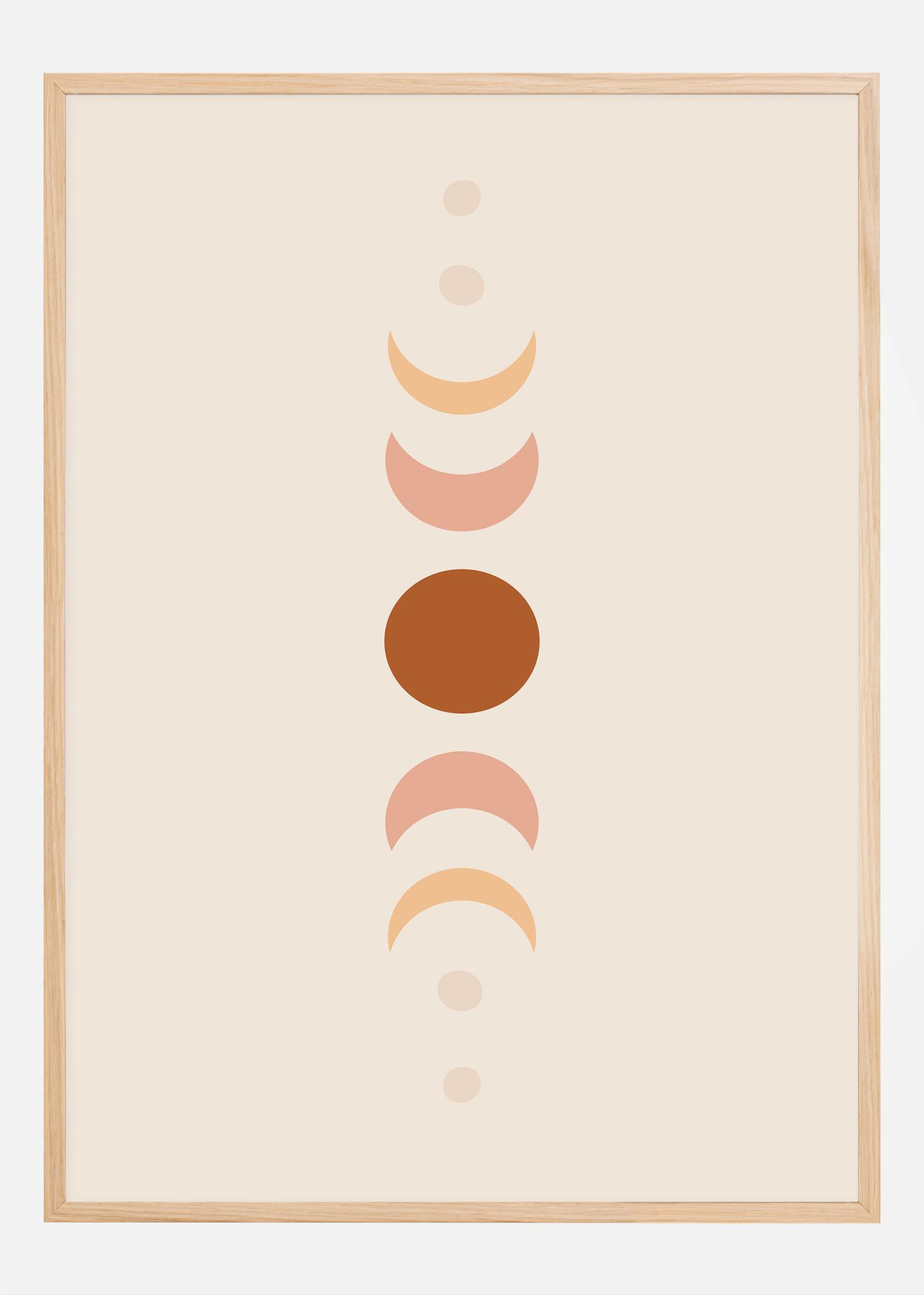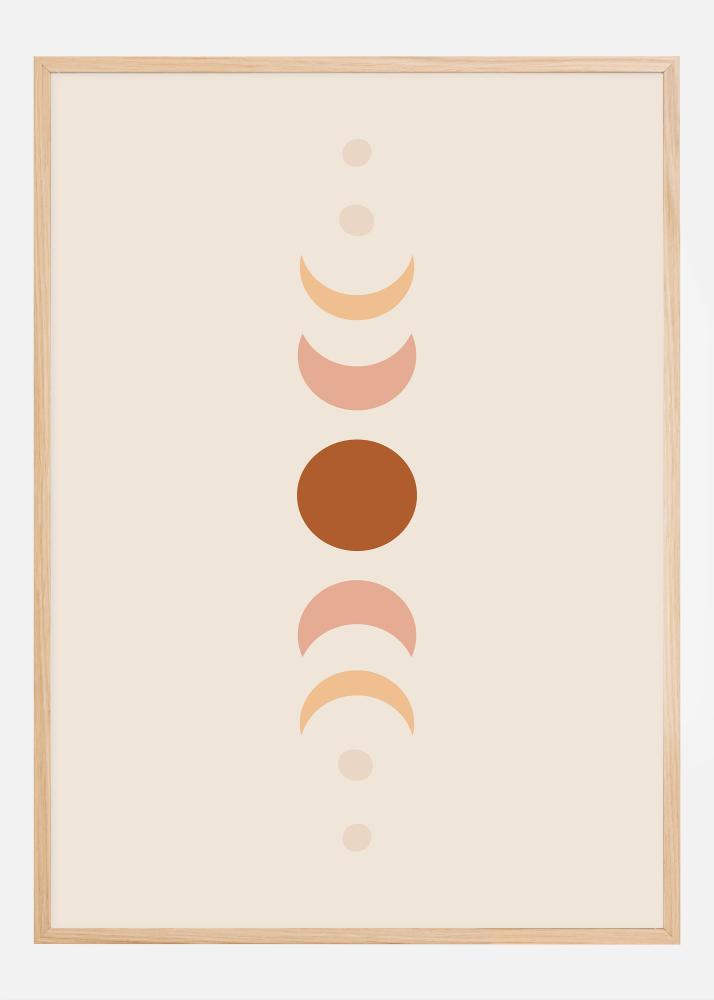 Med sin myke fargepalett og enkelhet passer denne printen perfekt inn i en minimalistisk interiørstil eller som en del av et mer eklektisk uttrykk. Denne månefaseplakaten er mer enn en dekorasjon; den er en påminnelse om naturens sykluser og den stille rytmen i våre egne liv. Det er en ideell veggpryd for et meditasjonsrom, soverom, eller som en del av et avslappet stuemiljø.