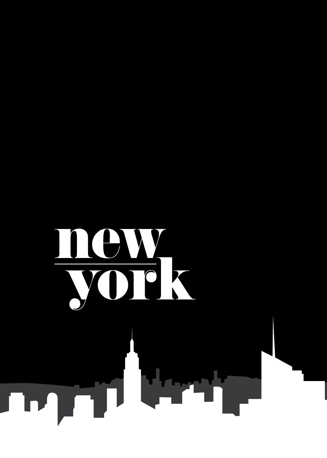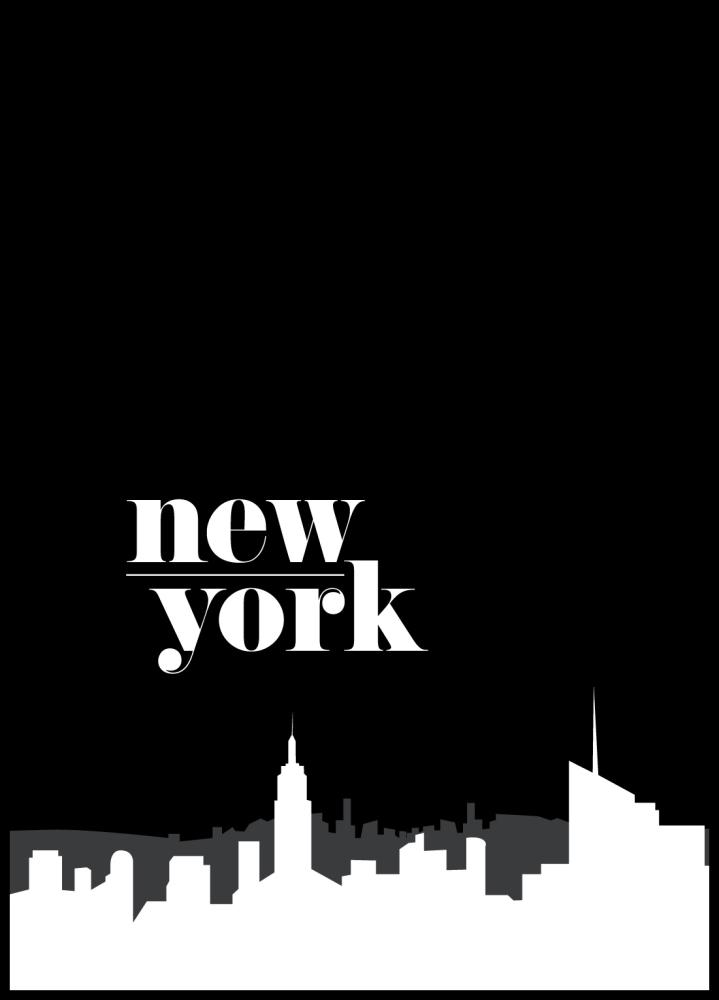 Gjør ditt hjem mer spennende med storbyposters på veggen! Denne grafiske plakaten har en svart bakgrunn og 2 ulike silhuetter som forestiller New Yorks bygninger. Den bakerste silhuetten går i en grå nyanse og viser hus mens forgrunnen er hvit og fremhever blant annet Empire State Building och Rockefeller Center. Trykket med hvite bokstaver uten versaler står teksten ”New York”. New York Skyline II gjør seg godt i en hvit eller grå ramme. Vil du gjøre den enda stiligere kjører du på med en svart eller grå ramme sammen med et hvitt passepartout. Velg mellom flere ulike størrelser og prisklasser.