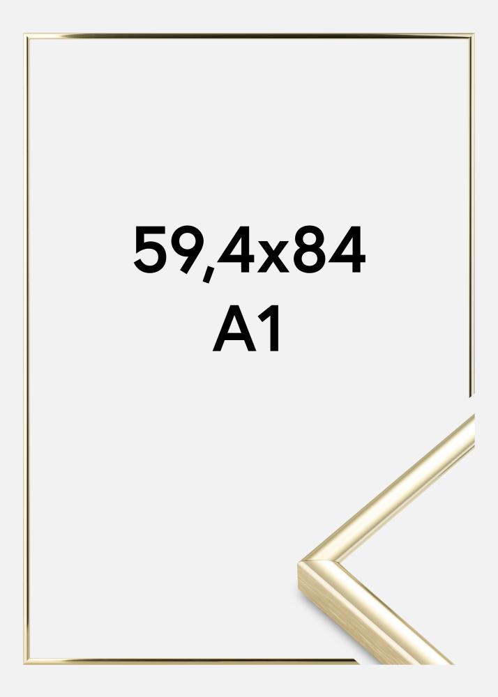 Elegant, blank aluminiumsramme i gull med en tynn profil i et moderne design. Dette er en av Nielsens fineste aluminiumsrammer med høy kvalitet i alle detaljer. Perfekt dersom du er på utkikk etter en fin ramme som gir motivet ditt en elegant innramming.