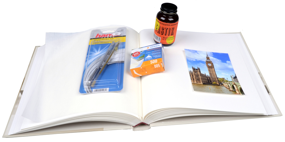 Albumet inneholder 56 hvite pappark + 4 vakre illustrerte sider med pergamynark imellom. For å sette inn bilder i albumet kan du bruke for eksempel fotohjørne.