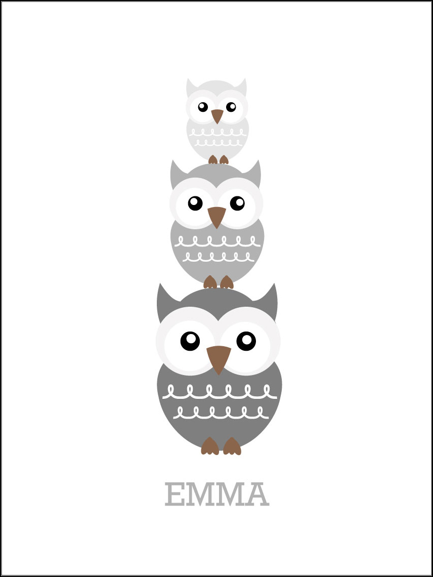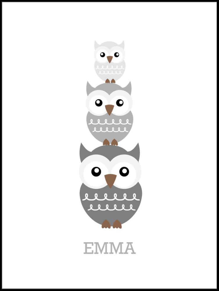 Owls Birth Poster Grey (21x29,7 cm (A4))