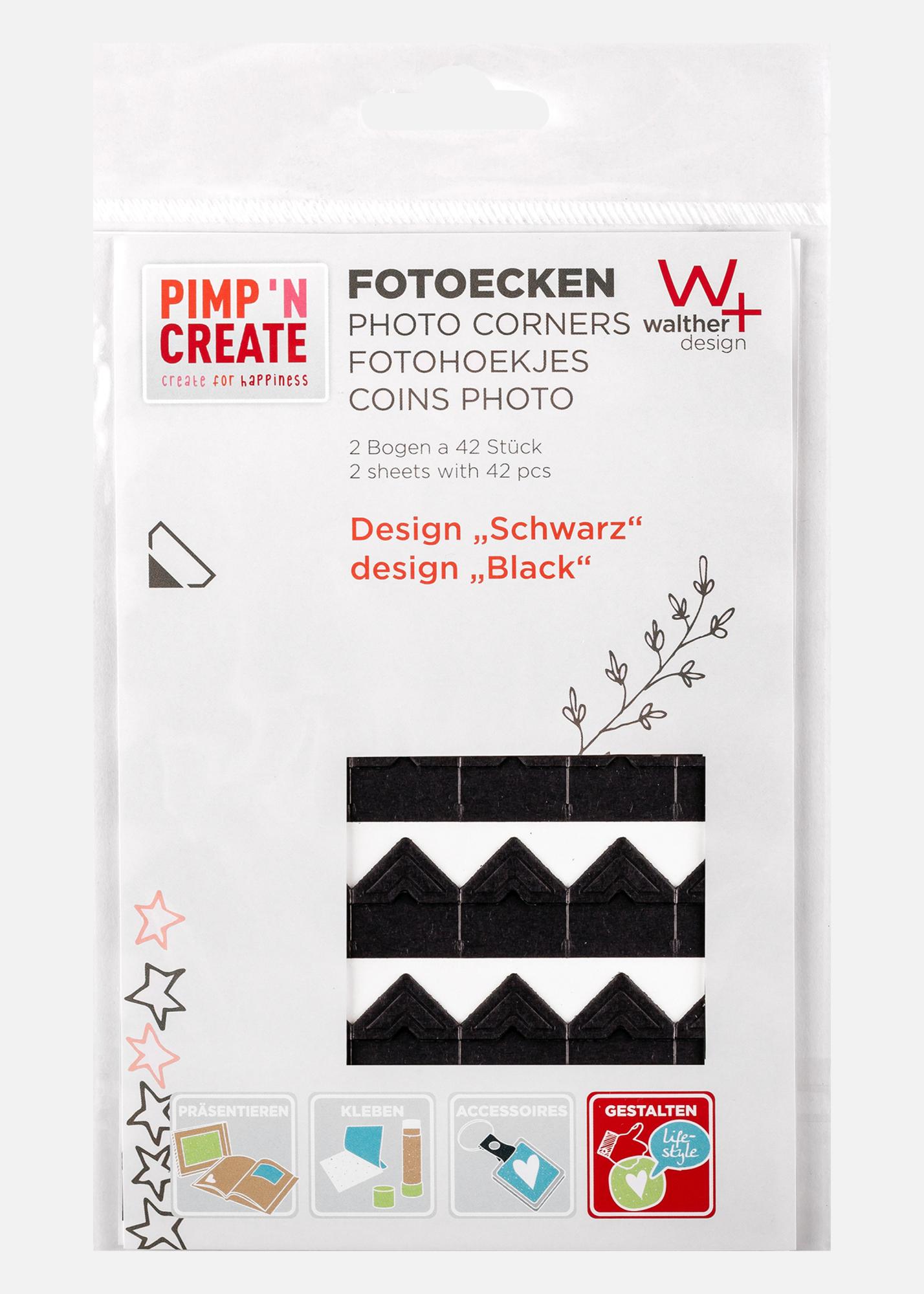 PAC Fotohjørner Svart er et sett med 84 selvklebende hjørner som gjør det enkelt å montere bilder i album uten å bruke lim. Den svarte fargen skaper en stilren og moderne innramming som fremhever bilder på en elegant måte. Perfekt for scrapbooking og fotoalbum.