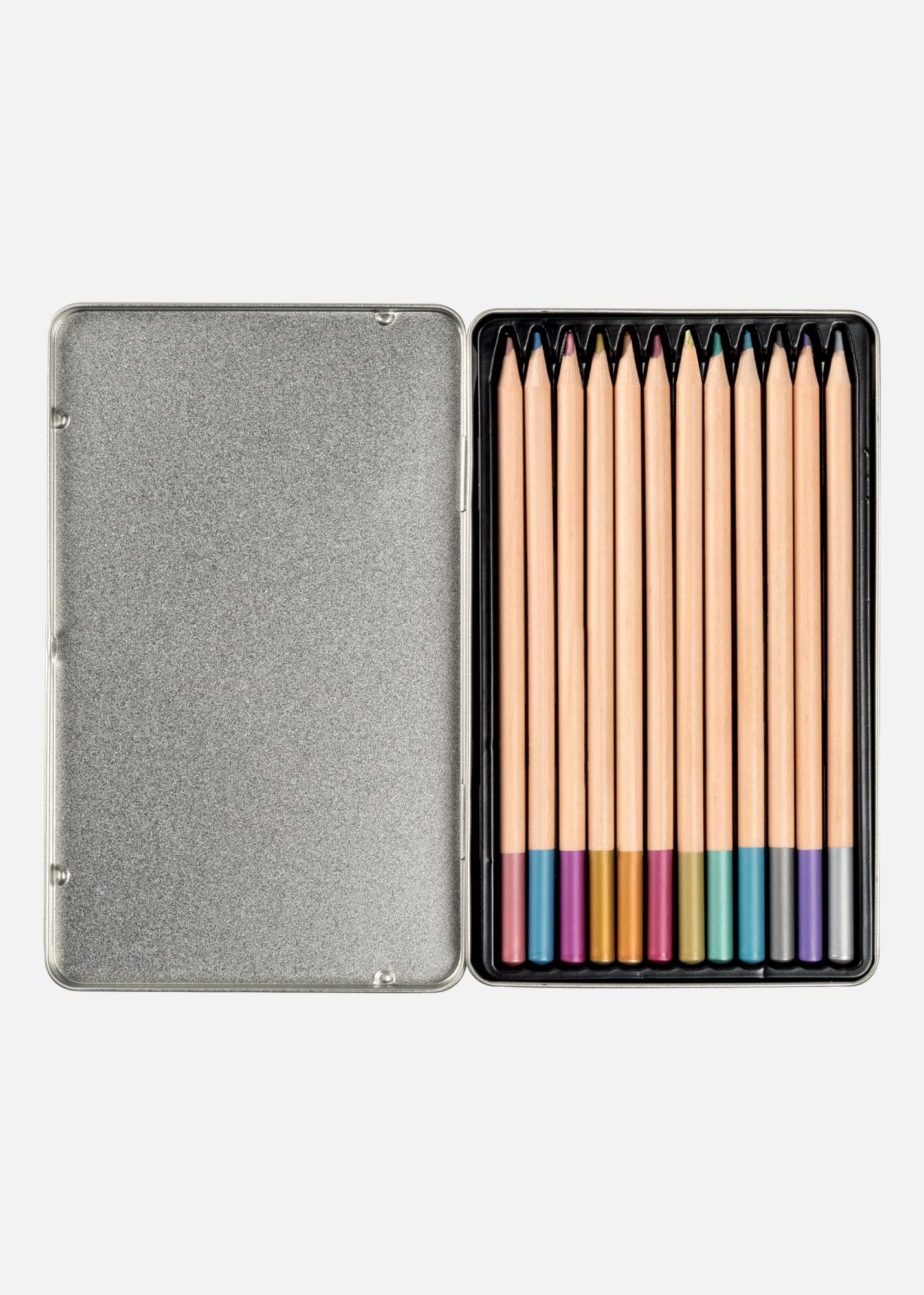 PAC Penner Sett Metallic inneholder 12 metalliske fargeblyanter som gir en pen og skimrende effekt på både lyse og mørke papir. Perfekt for scrapbooking, fotoalbum og kreative prosjekter. Sett inkluderer fargene gull, sølv, kobber, rosa, rød, lilla, blå, lyseblå, grønn, lys grønn, brun og svart.