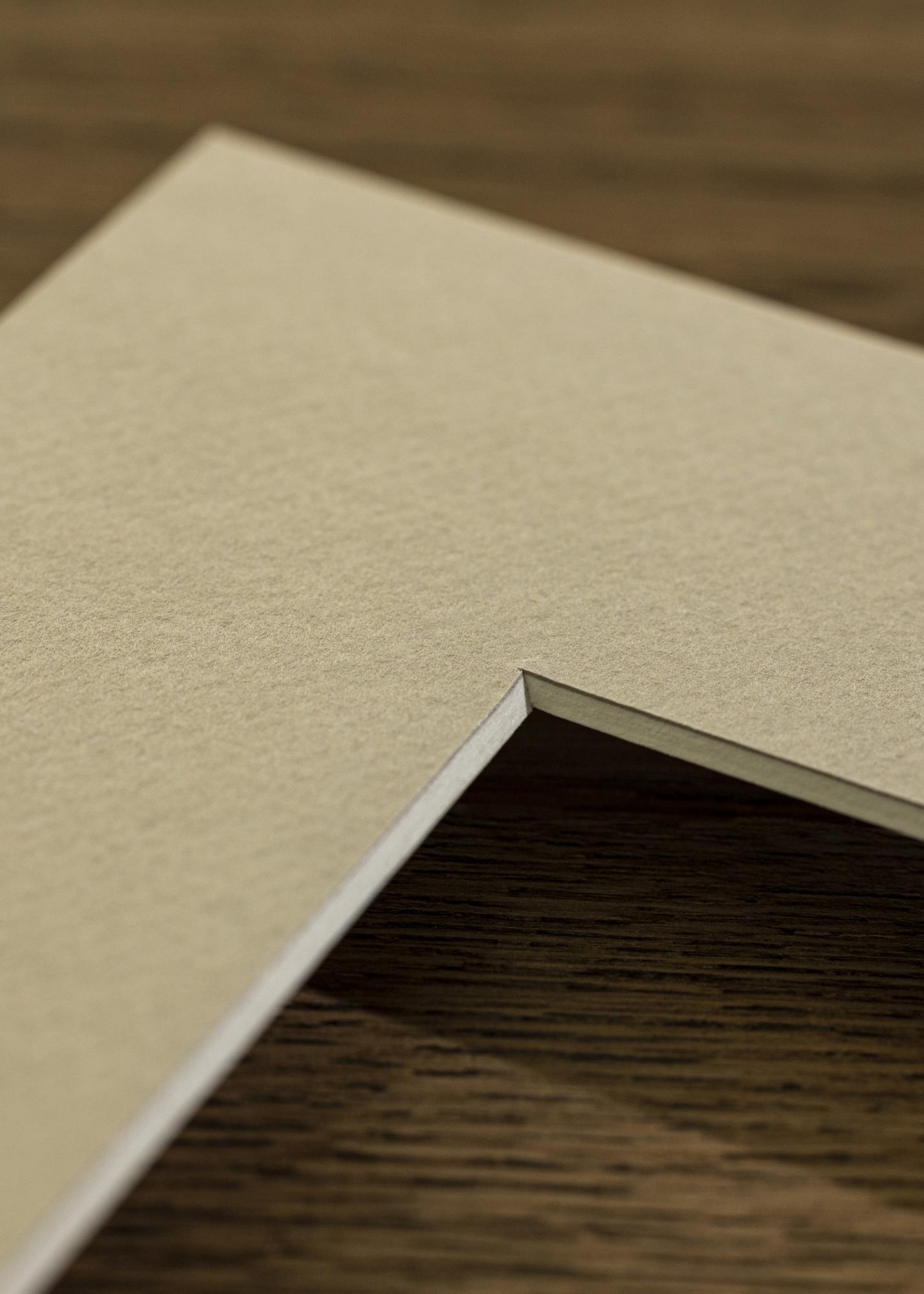 Den skråskårne innerkanten med en hvit kjerne skaper en vakker kontrasteffekt som gir dybde og dimensjon til innrammingen. Denne detaljen bidrar til et sofistikert uttrykk som passer både klassiske og moderne presentasjoner. Materialets fine struktur forsterker den elegante følelsen og gjør passepartouten til et utmerket valg for alle typer kunstverk.