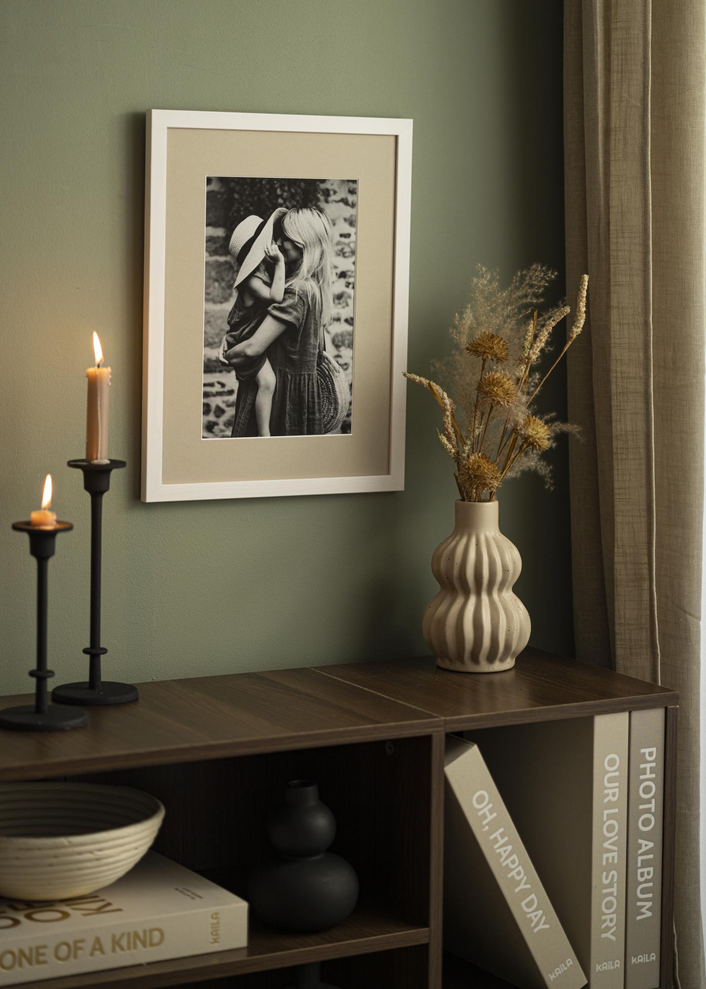 Passepartouten er laget av syrefri kartong, som garanterer at bildene og kunstverkene dine håndteres varsomt og bevares i best mulig stand over tid. Det syrefrie og pH-nøytrale materialet forhindrer at bildene blekner, noe som sikrer lang holdbarhet og bevaring av farger og detaljer.
