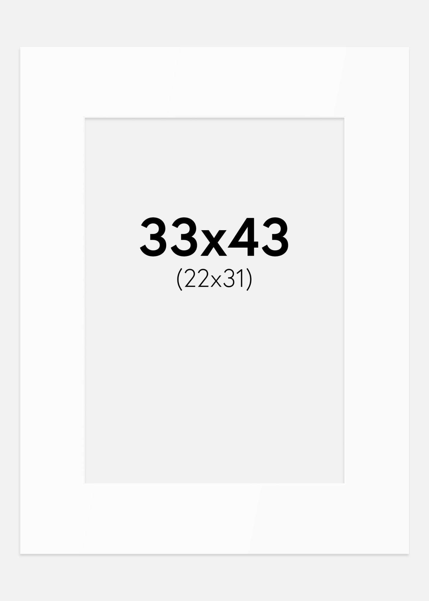 Denne elegante passepartout i hvit nyanse er det perfekte valget for å fremheve bildene og kunstverkene dine. Med en indre størrelse som passer bilder i 23x32 cm og et yttermål på 33x43 cm, tilbyr den en vakker innramming som gir motivene dine plassen de fortjener.