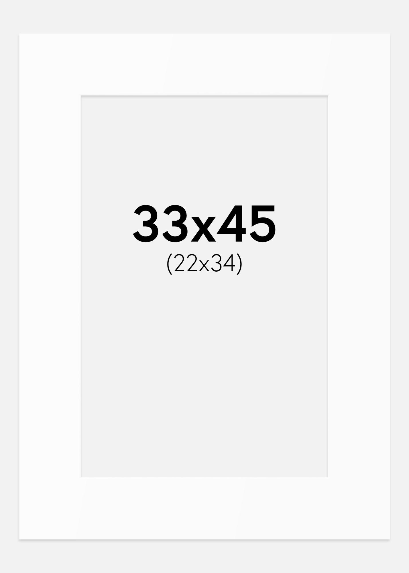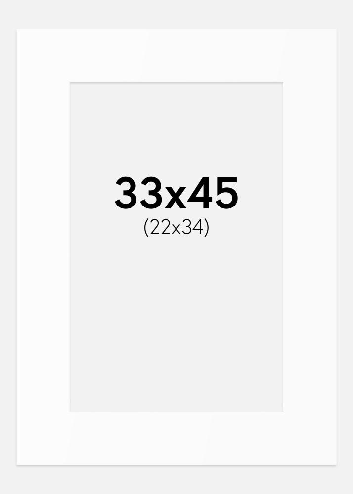 Denne elegante passepartout i hvit nyanse er det perfekte valget for å fremheve bildene og kunstverkene dine. Med en indre størrelse som passer bilder i 23x35 cm og et ytre mål på 33x45 cm, tilbyr den en vakker innramming som gir motivene dine den oppmerksomheten de fortjener.