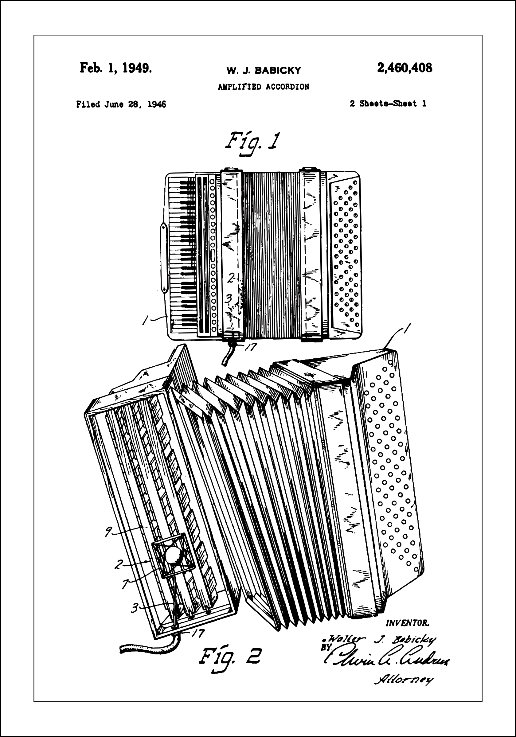 Patent Print - Amplified Accordion I - White Plakat (21x29.7 cm (A4))
