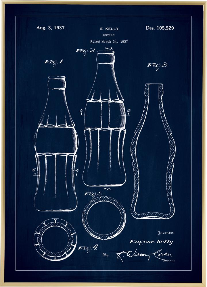 Patenttegning - Coca Cola-flaske - Blå (13x18 cm)